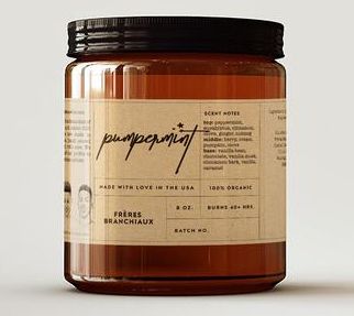 Fall is calling. This real-flame candle is the perfect mix of peppermint and pumpkin. All that is missing is your PSL and sheepskin boots. From Freres Branchiaux.