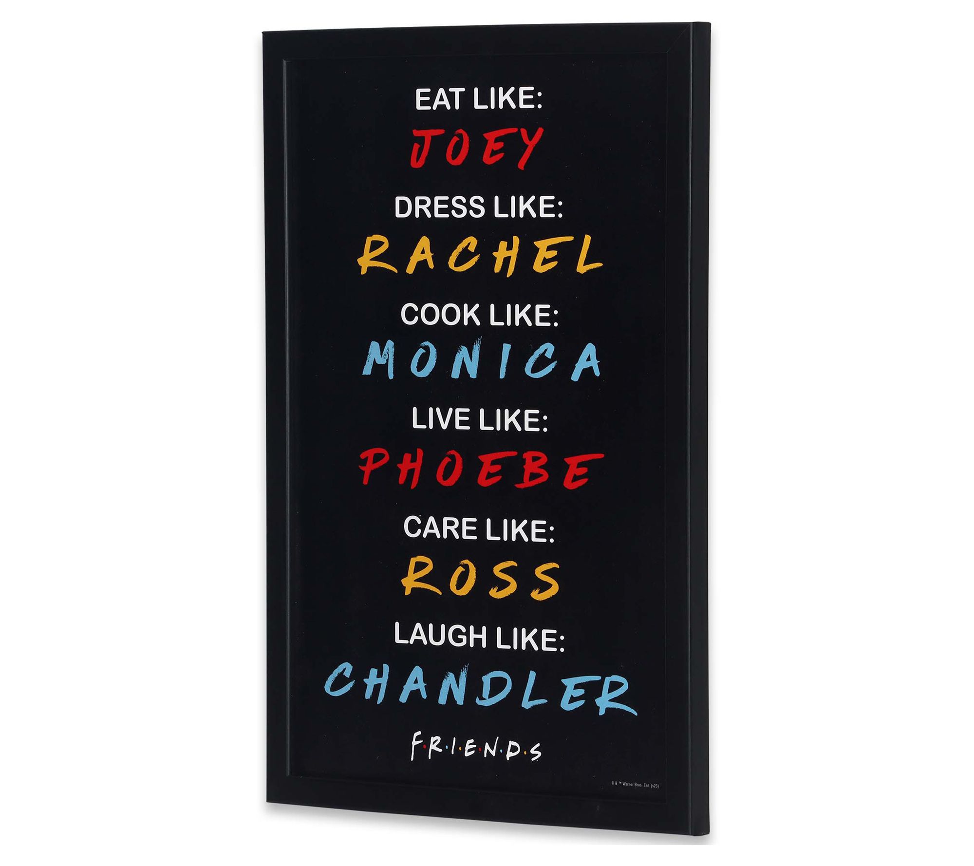 Guests will gather around this framed sign to discover the fun characteristics of the much-loved cast of Friends. Whimsical and welcoming, this piece of wall art is perfect for fans of the television show. Gift one to your friend! From Open Road Brands.