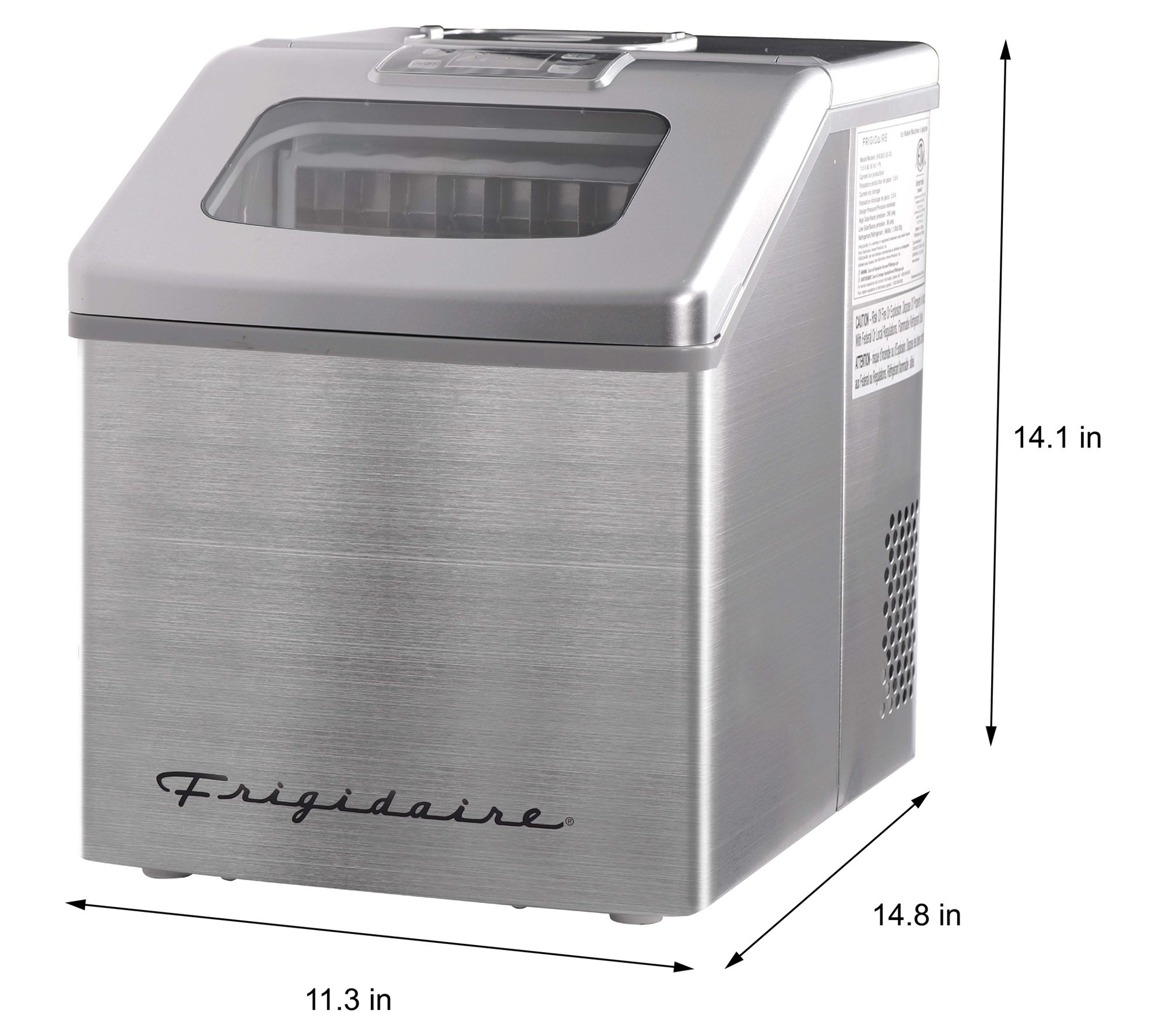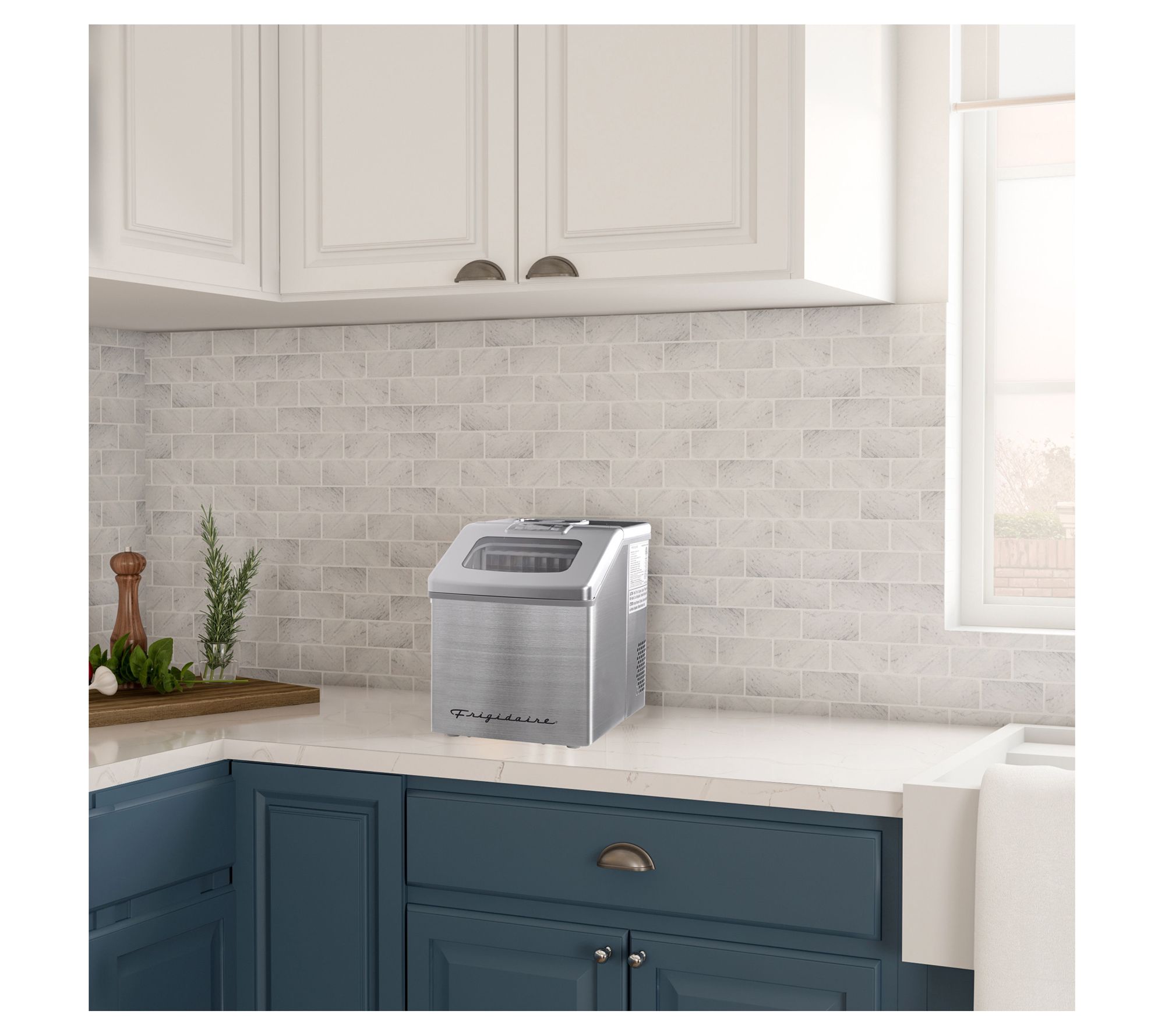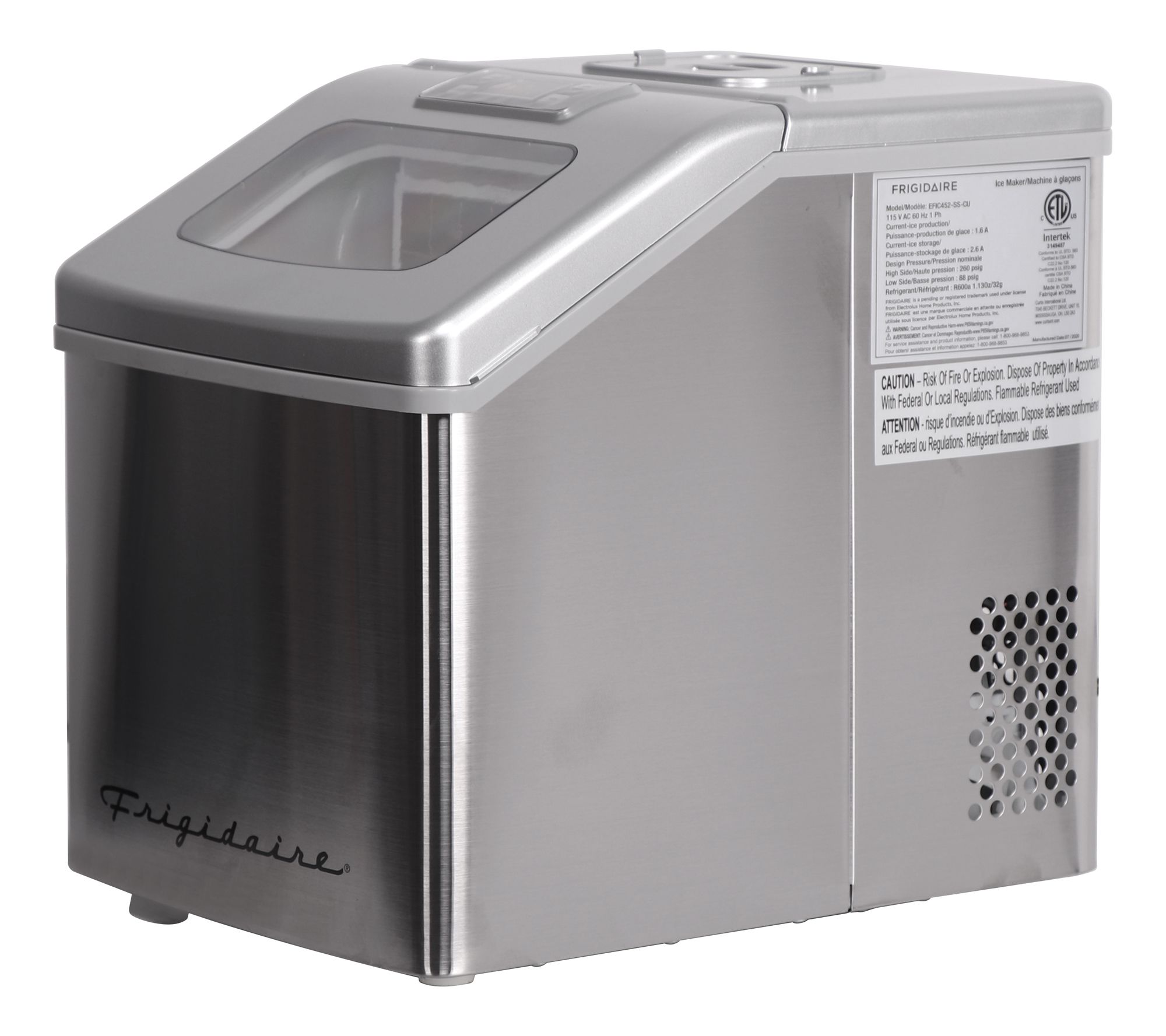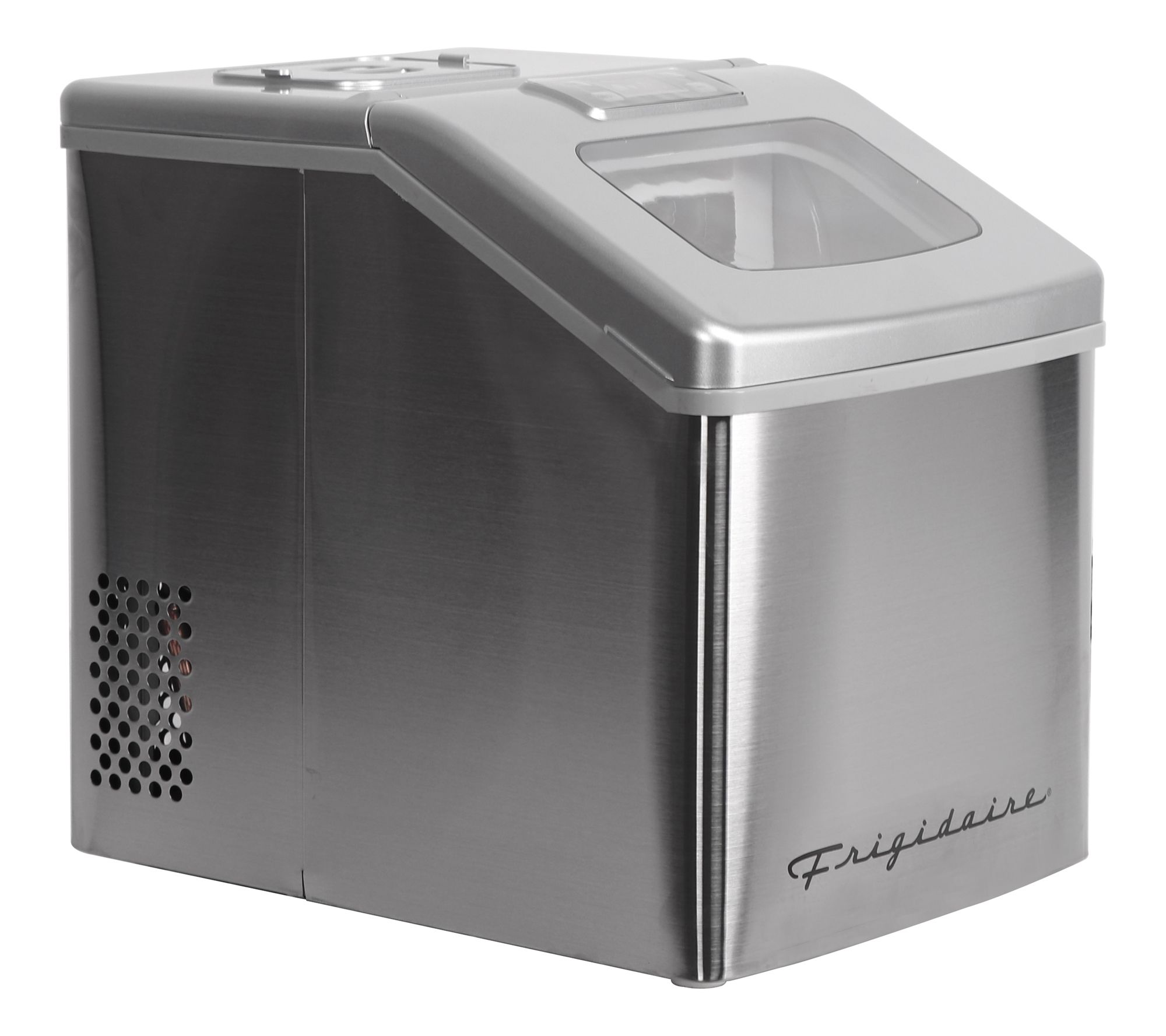 This sleek stainless steel ice maker can produce up to 33 lbs of soft, crunchy ice per day and delivers your first nugget in just 10-15 minutes. Simply fill the reservoir and plug it in. From Frigidaire.