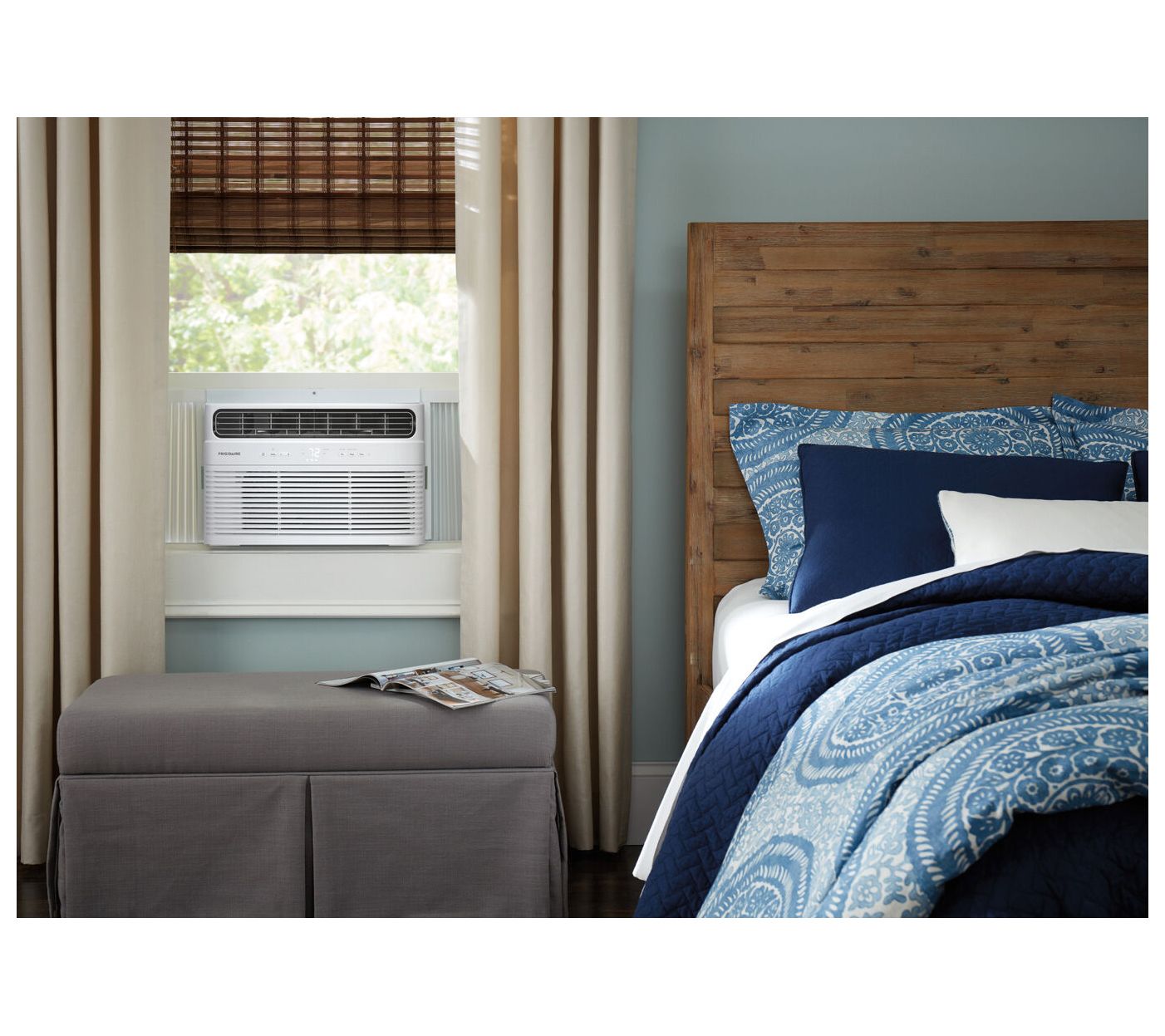 • Includes air conditioner, manual, window curtain panels, remote, and batteries