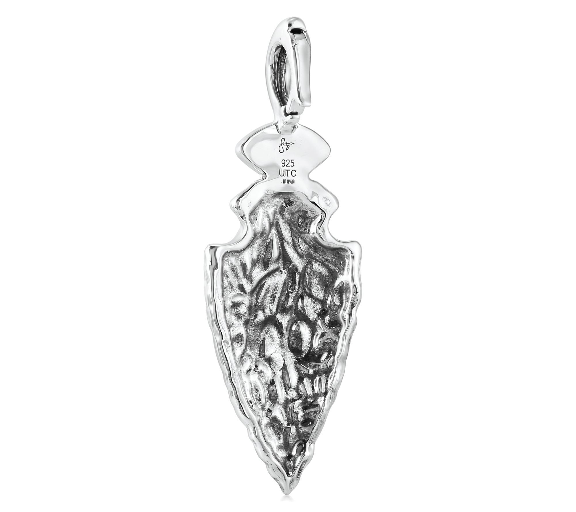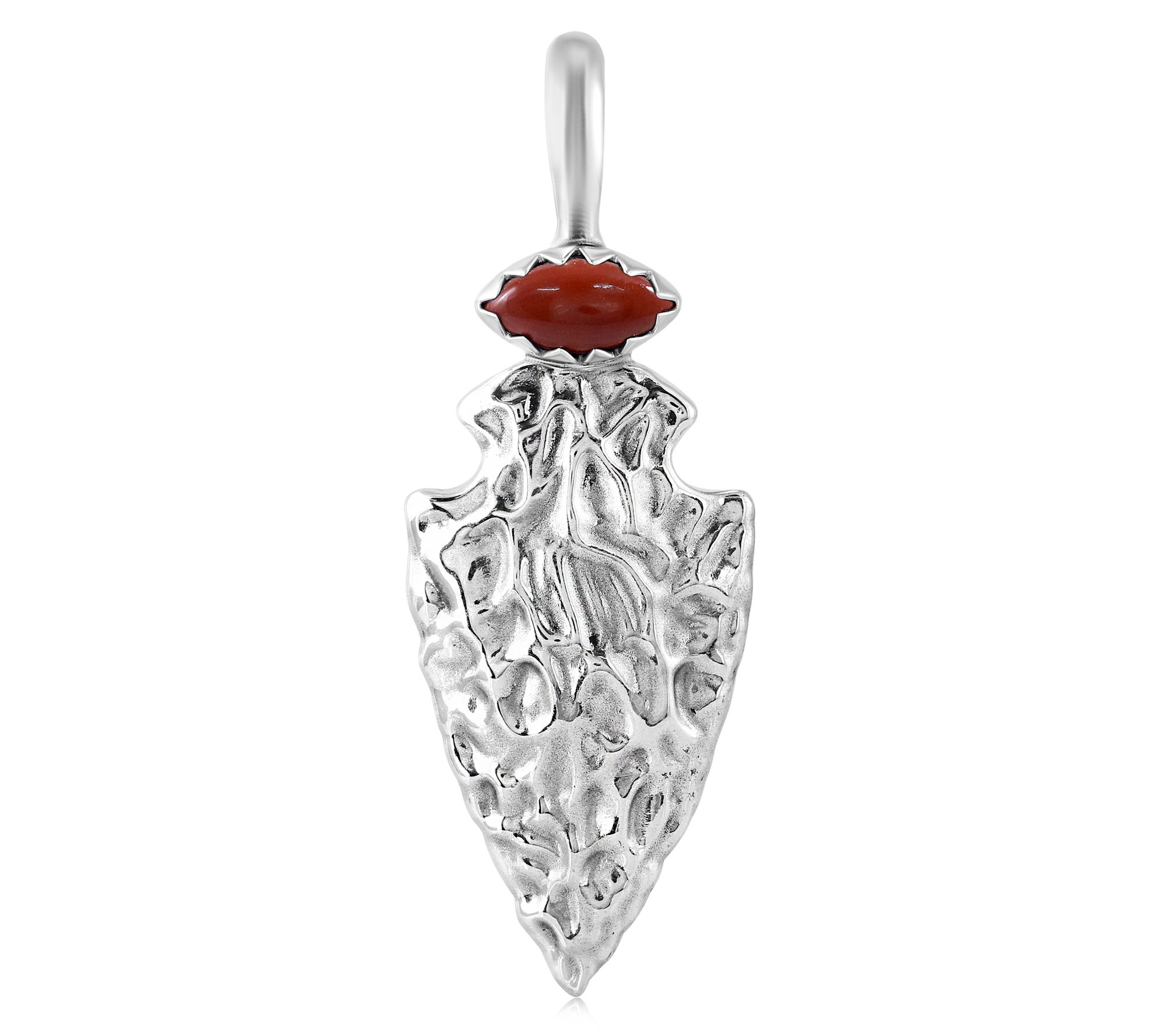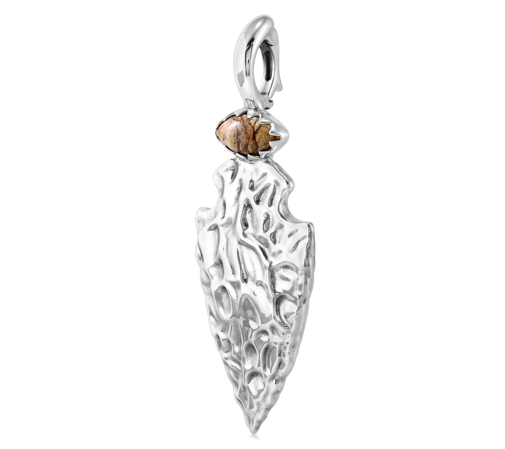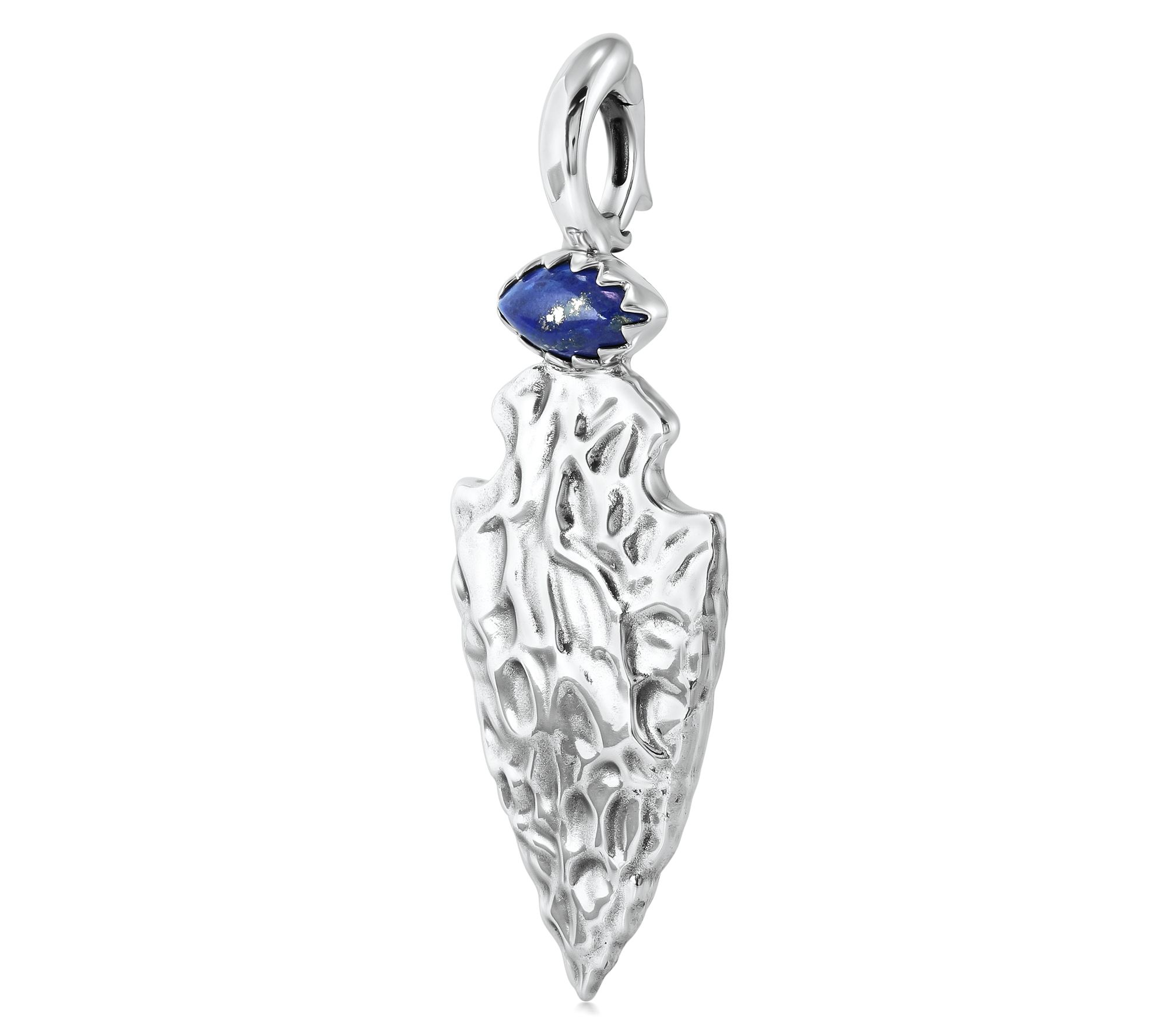 Taking a cue from ancient symbolism and modern craftsmanship, this arrowhead enhancer makes every day feel like an adventure. The bold marquise cabochon adds a colorful note to layered chains or leather cords. With a secure snap hinge bail, switching up your look from day to night is effortless. From Fritz Casuse.