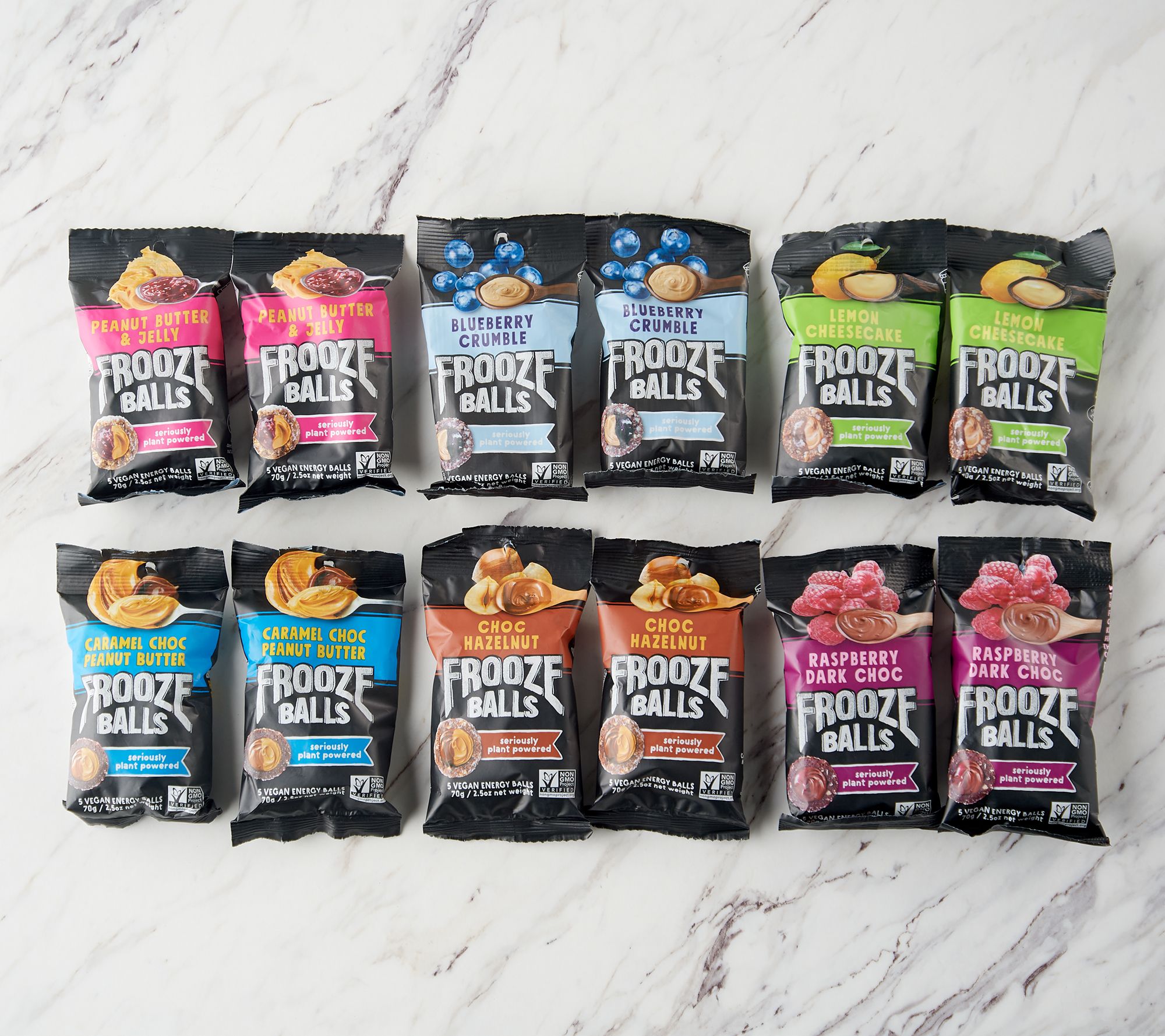 • Includes 12 2.5-oz packs of fruit and nut stuffed bites: two each of raspberry dark chocolate, peanut butter and jelly, lemon cheesecake, blueberry crumble, chocolate hazelnut, and caramel chocolate peanut butter