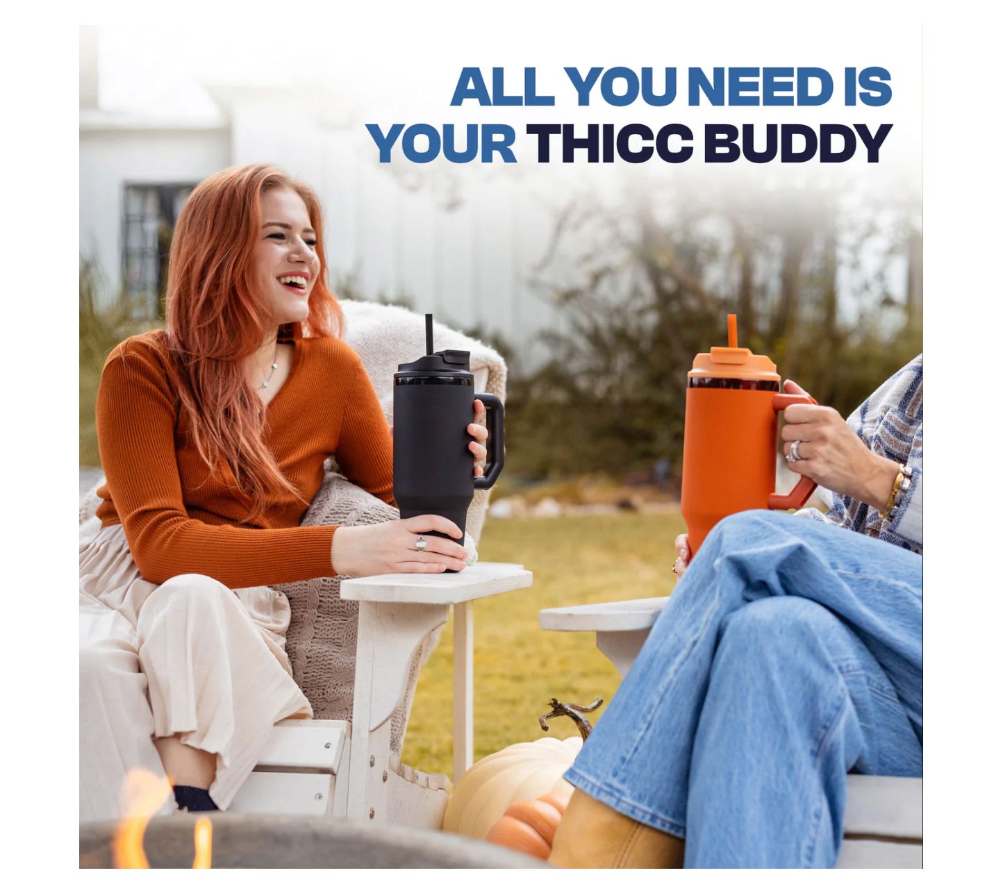 • Includes 40-oz Thicc Buddy tumbler, lid with flip straw, and silicone top