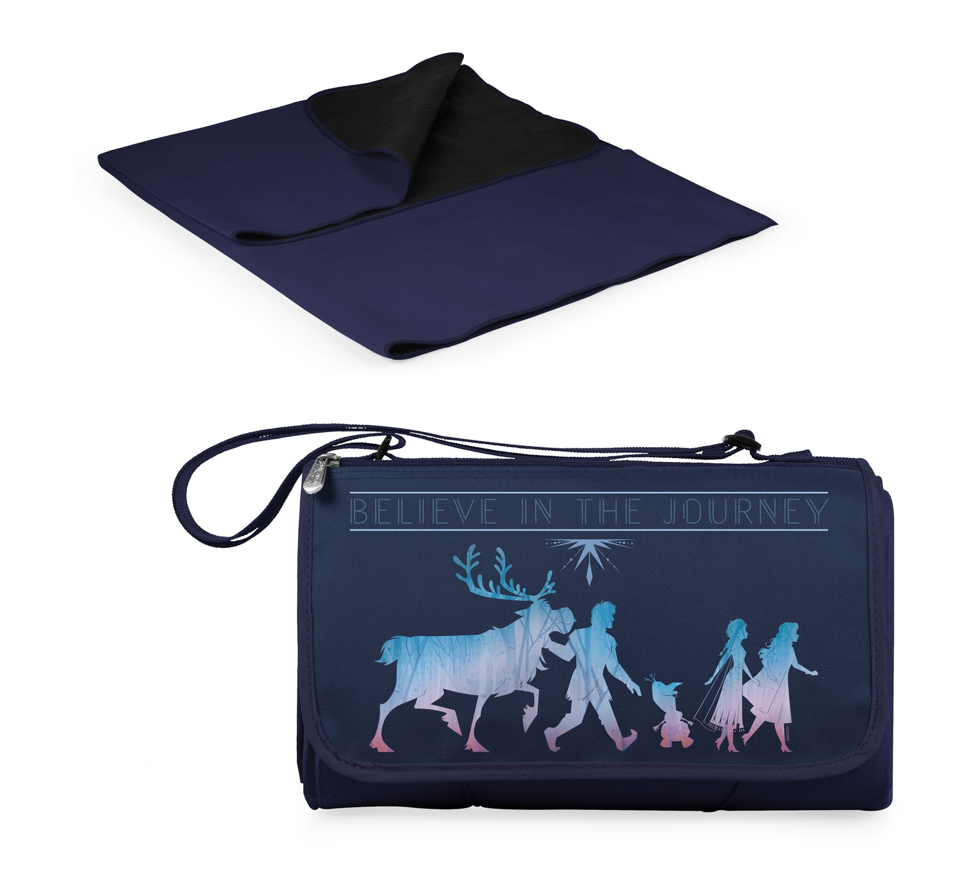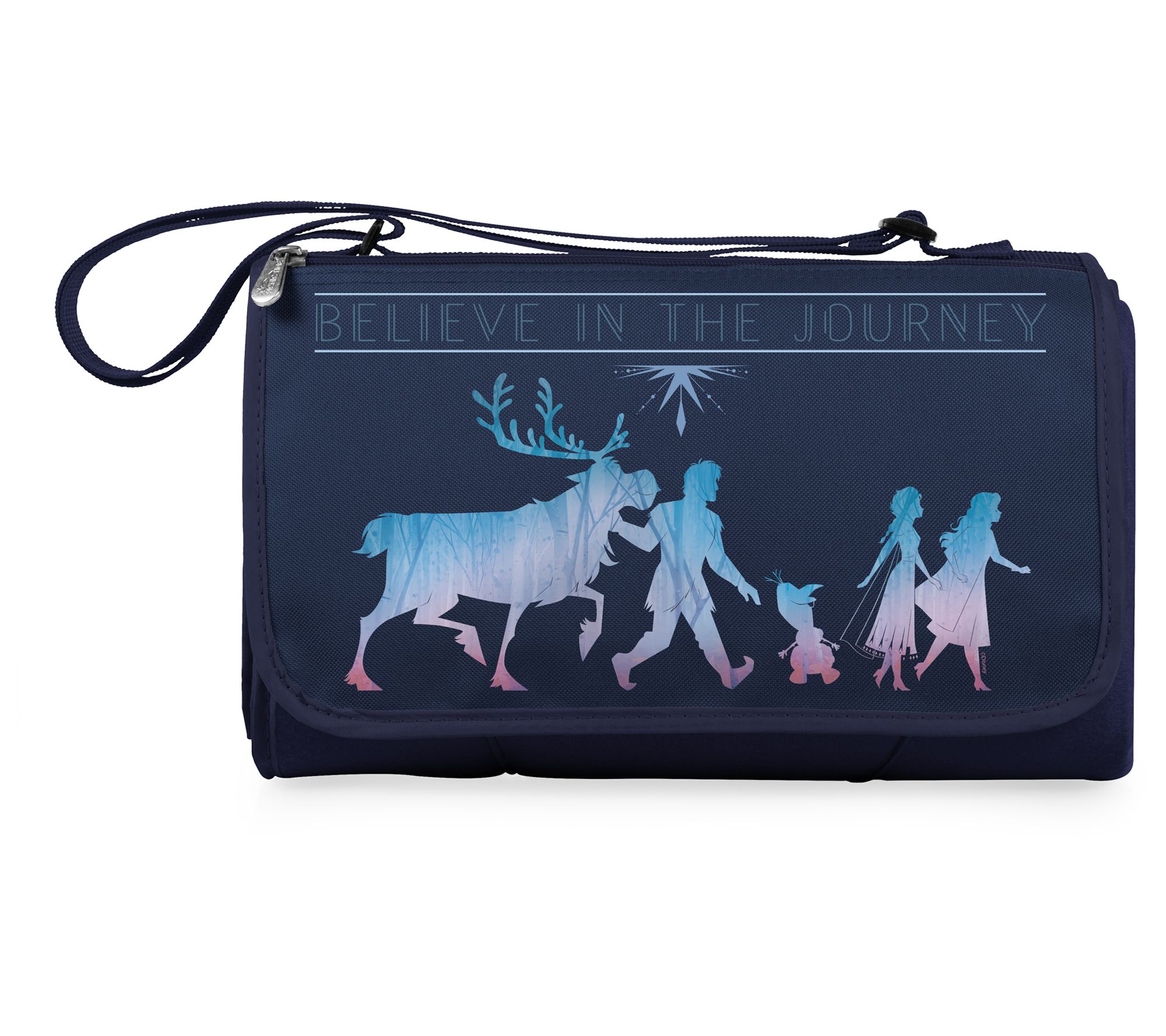 Whether you're traveling to Arendelle or beyond, this Frozen 2 Blanket Tote is a stylish accessory. It's equipped with a convenient shoulder strap and unfolds into a spacious outdoor blanket for picnics and more. From Oniva.