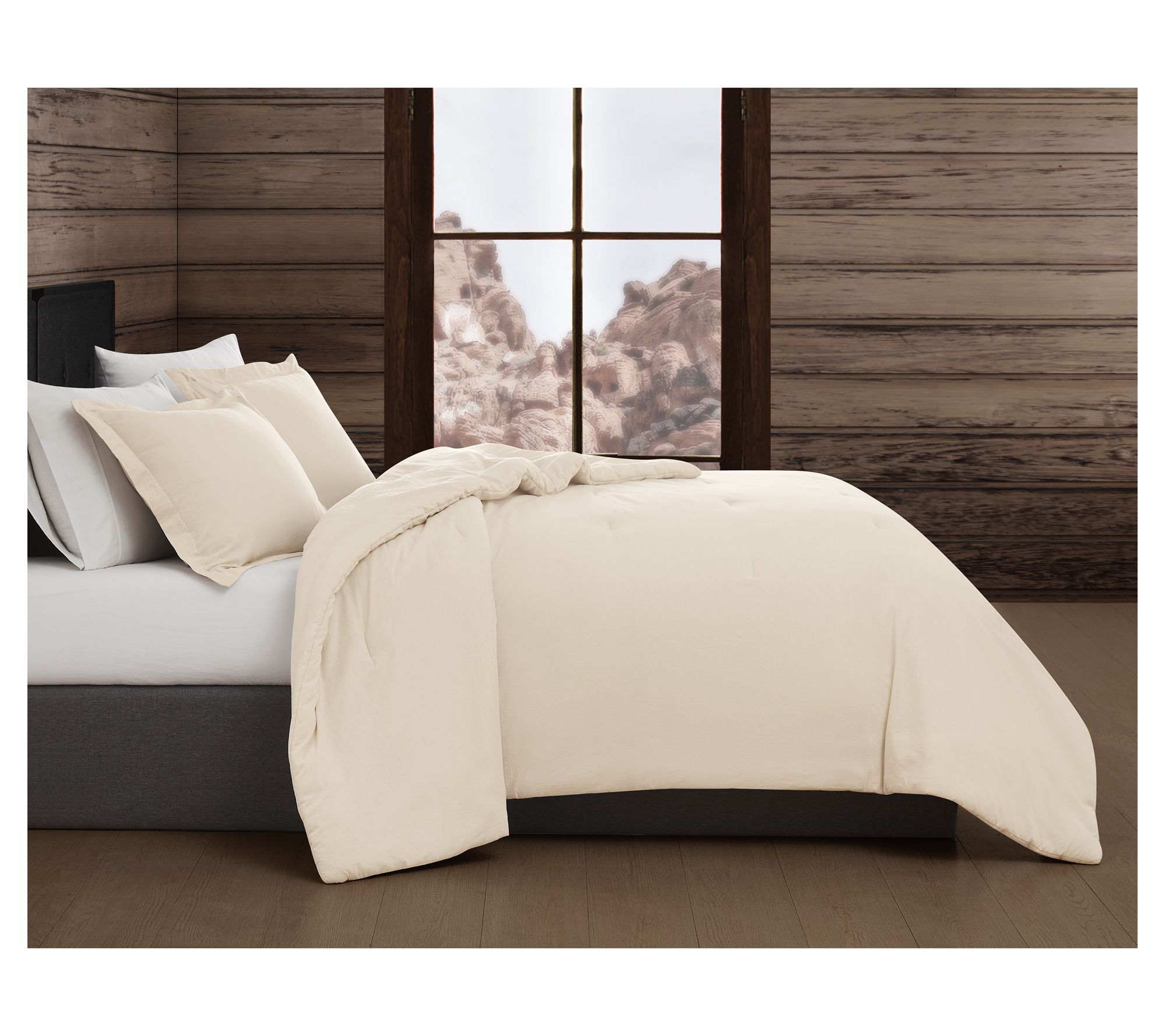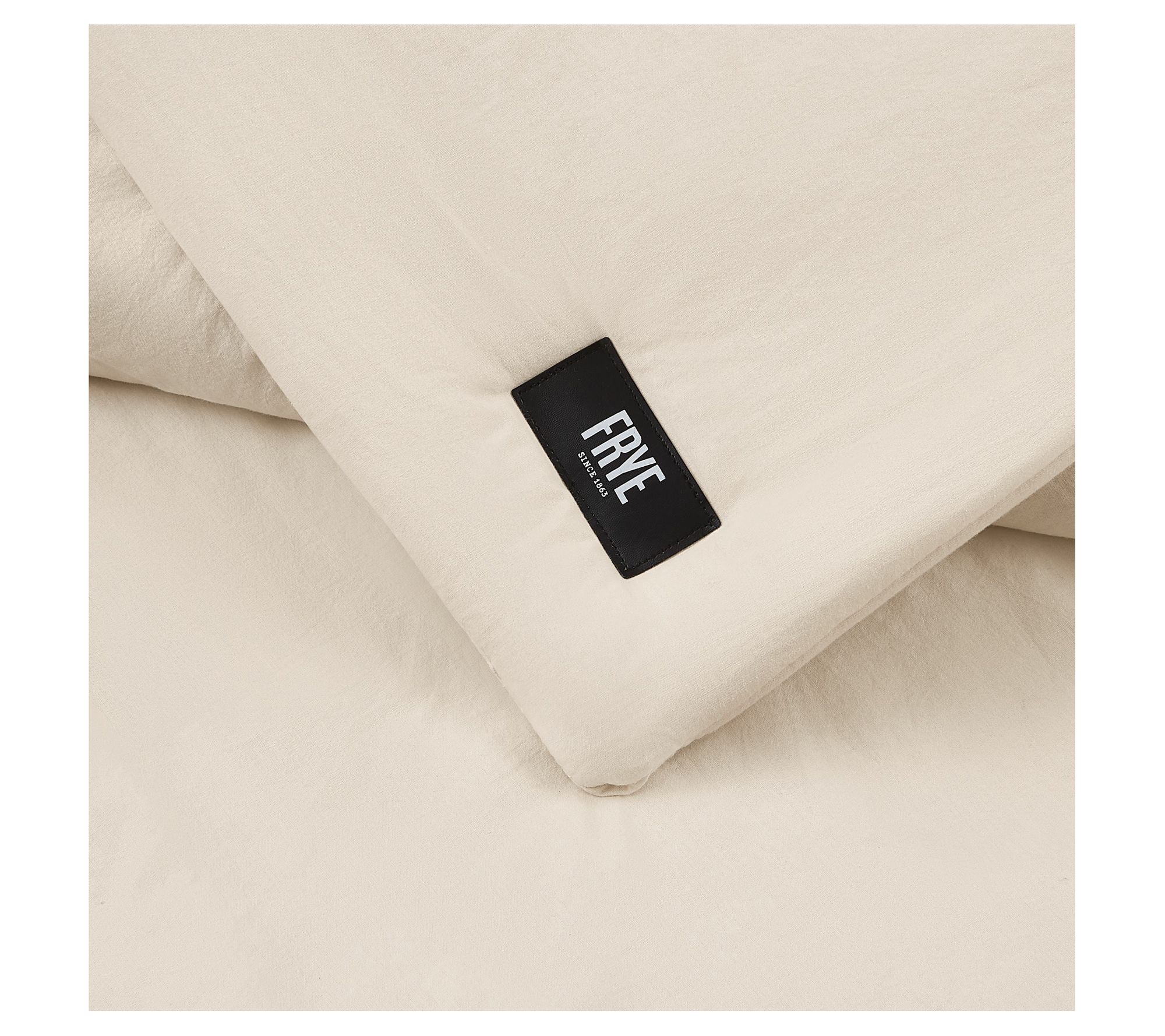 Transform your bedroom into a serene sanctuary with the Frye vintage-washed cotton comforter set. This king-sized set offers breathable softness and a luxurious, lived-in feel thanks to its 100% cotton percale fabric and special enzyme wash. The reversible design and timeless aesthetic make it a versatile addition to any decor. From Frye.