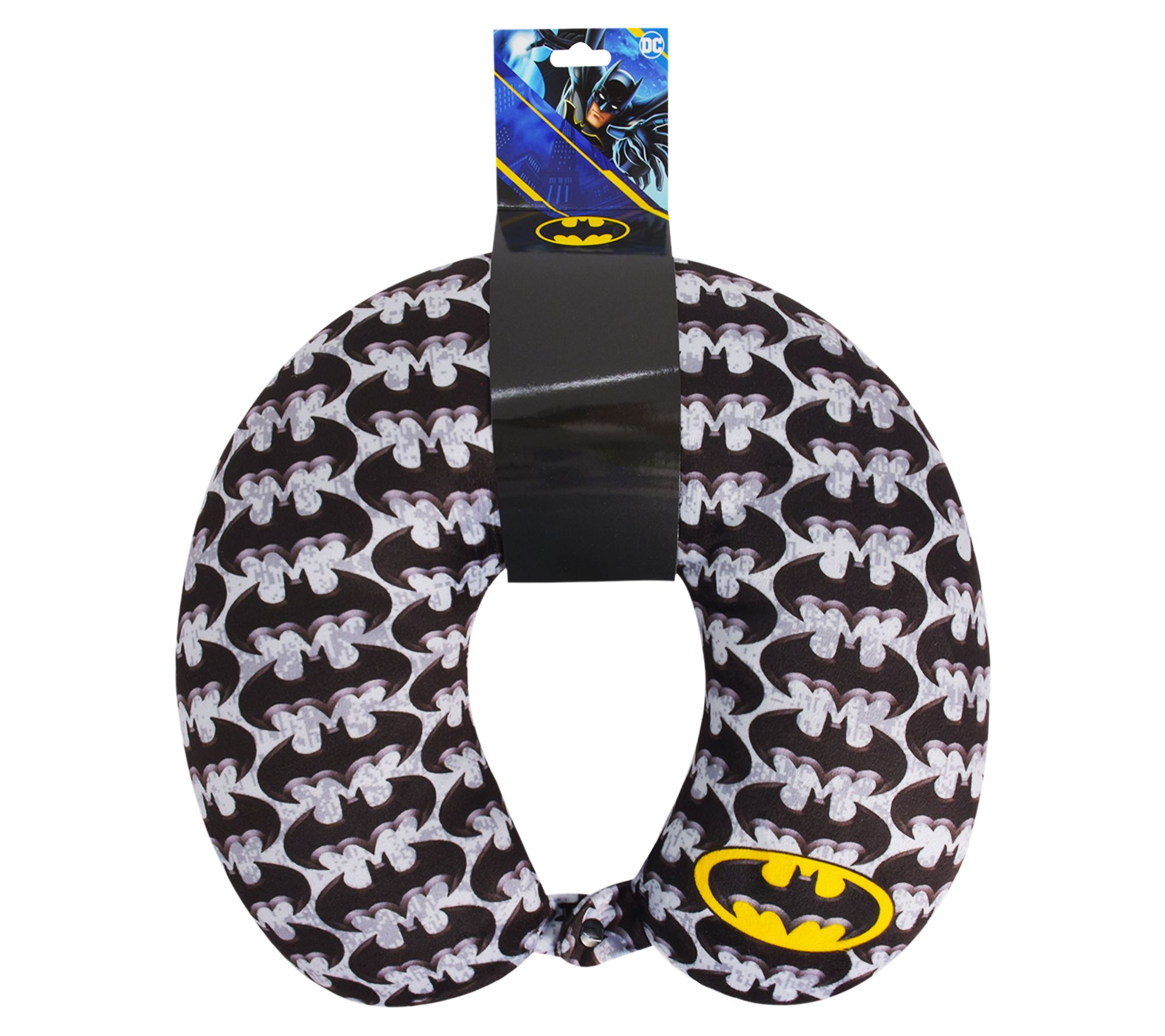 With a fun allover print accented by a bright yellow logo, this soft and supportive neck pillow is the perfect way to stay comfy on a flight or a long road trip to Gotham. From FUL.