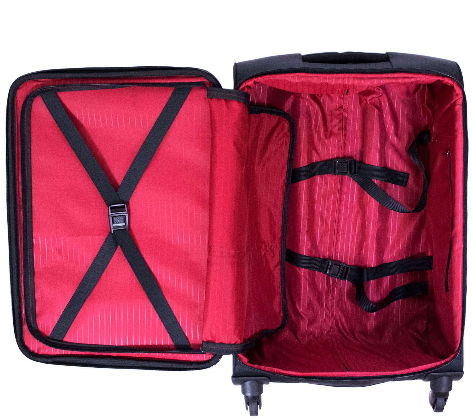 Lightweight and durable, this soft-sided luggage is set on spinner wheels for gliding effortlessly through busy terminals. From FUL.