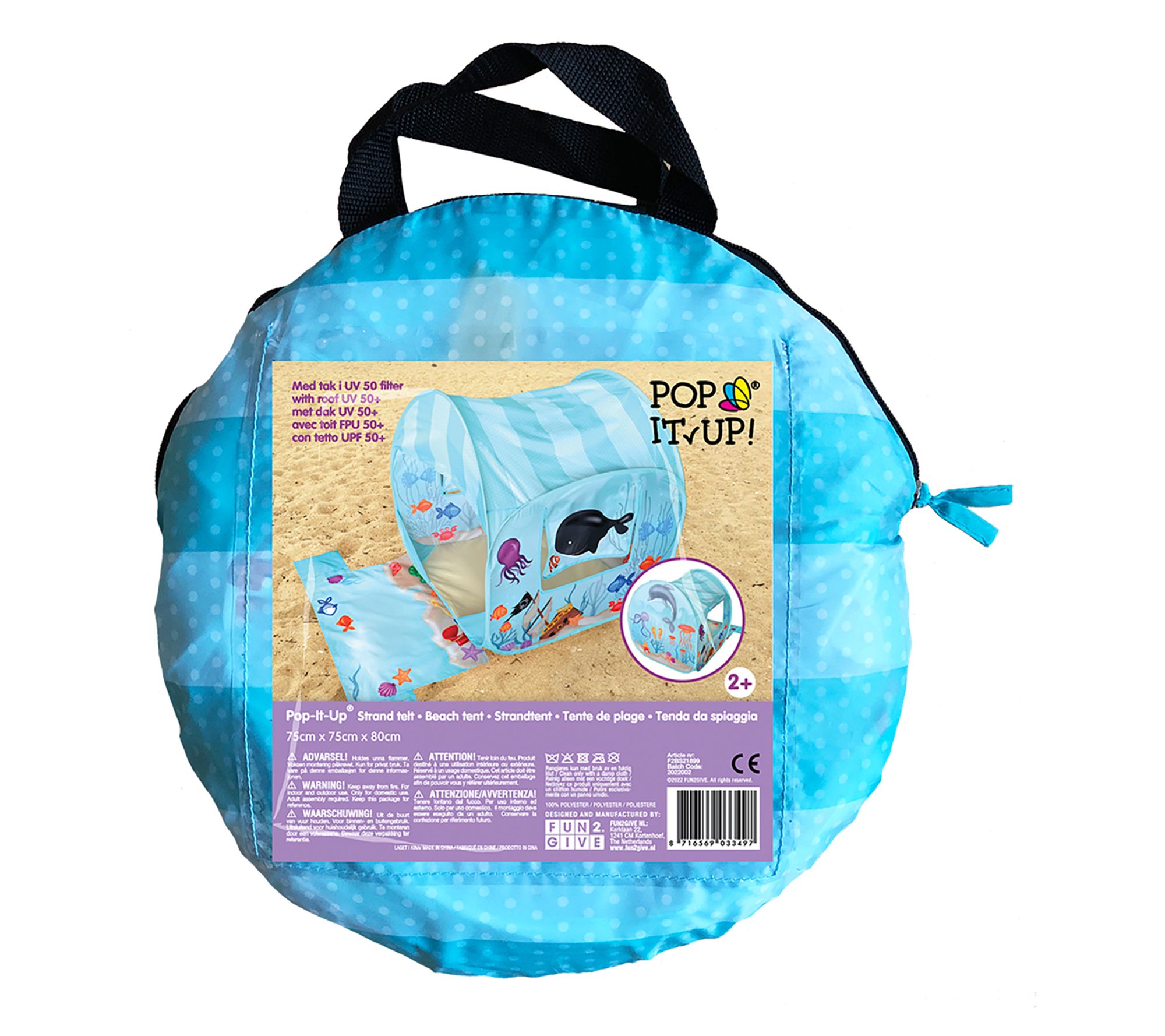 Dive into a world of imagination and sun-safe play with the Fun2Give Pop It Up Ocean Adventure Play Tent. Perfect for beach, pool, or park outings, this tent boasts UV-50+ protection, ensuring your little ones are shielded from the sun while they explore the ocean-themed graphics. Easy to set up and pack away in its compact carry bag, this tent comes with sand pegs for stability, making it the ultimate outdoor companion for children aged 3 years and up. From Fun2Give.
