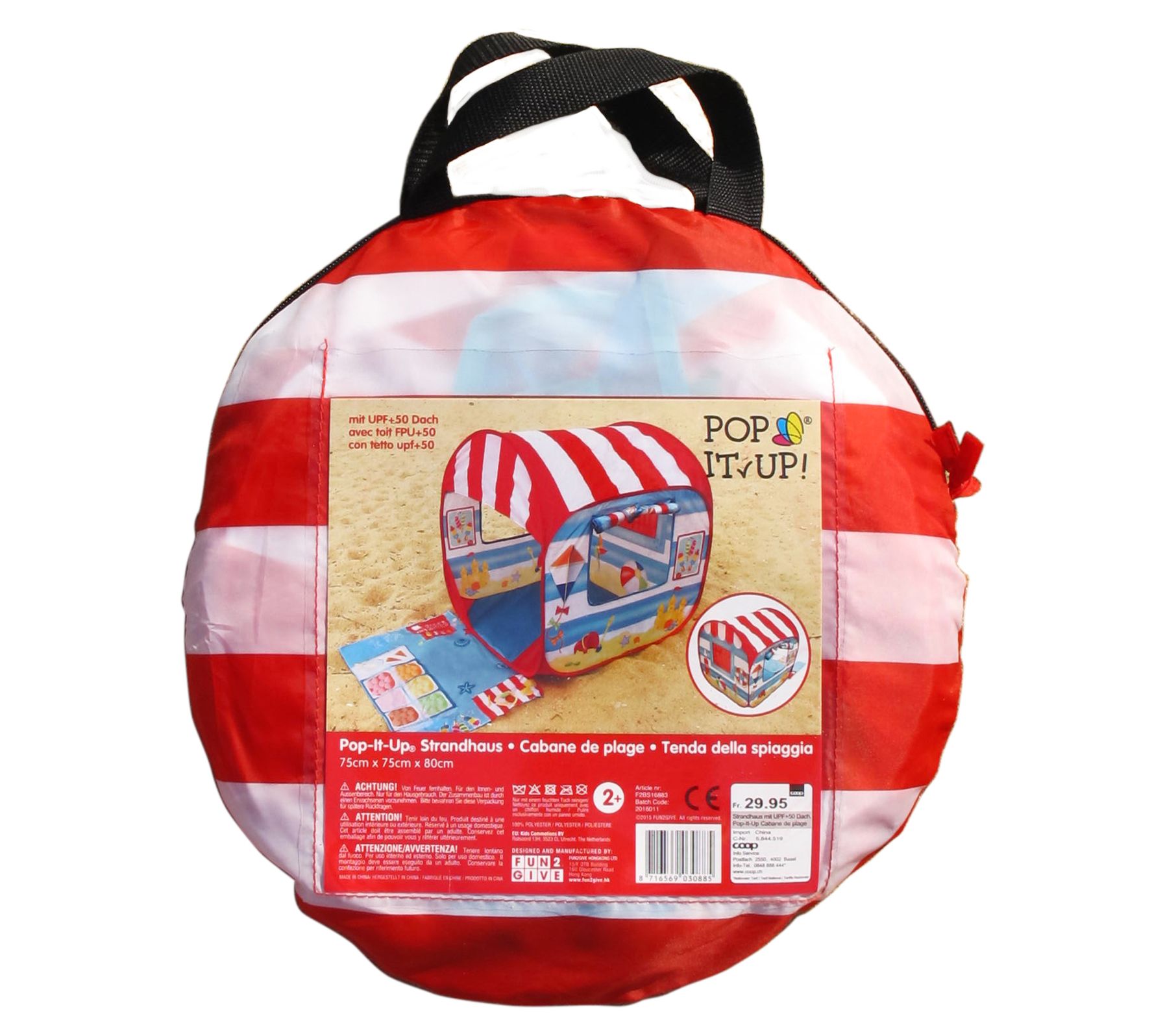 Bring the adventure outdoors with the Fun2Give Pop It Up Play Tent, an ideal companion for little explorers seeking fun in the sun. This UPF 50+ rated tent provides a cozy haven from the sun, wind, and other elements, making it perfect for beach days or backyard play. With a vibrant design and a playmat that features pockets for toy storage, it promises endless entertainment. Plus, its pop-up system allows for effortless setup and takedown, and it comes with a carrying bag and stakes for easy portability and secure placement. From Fun2Give.