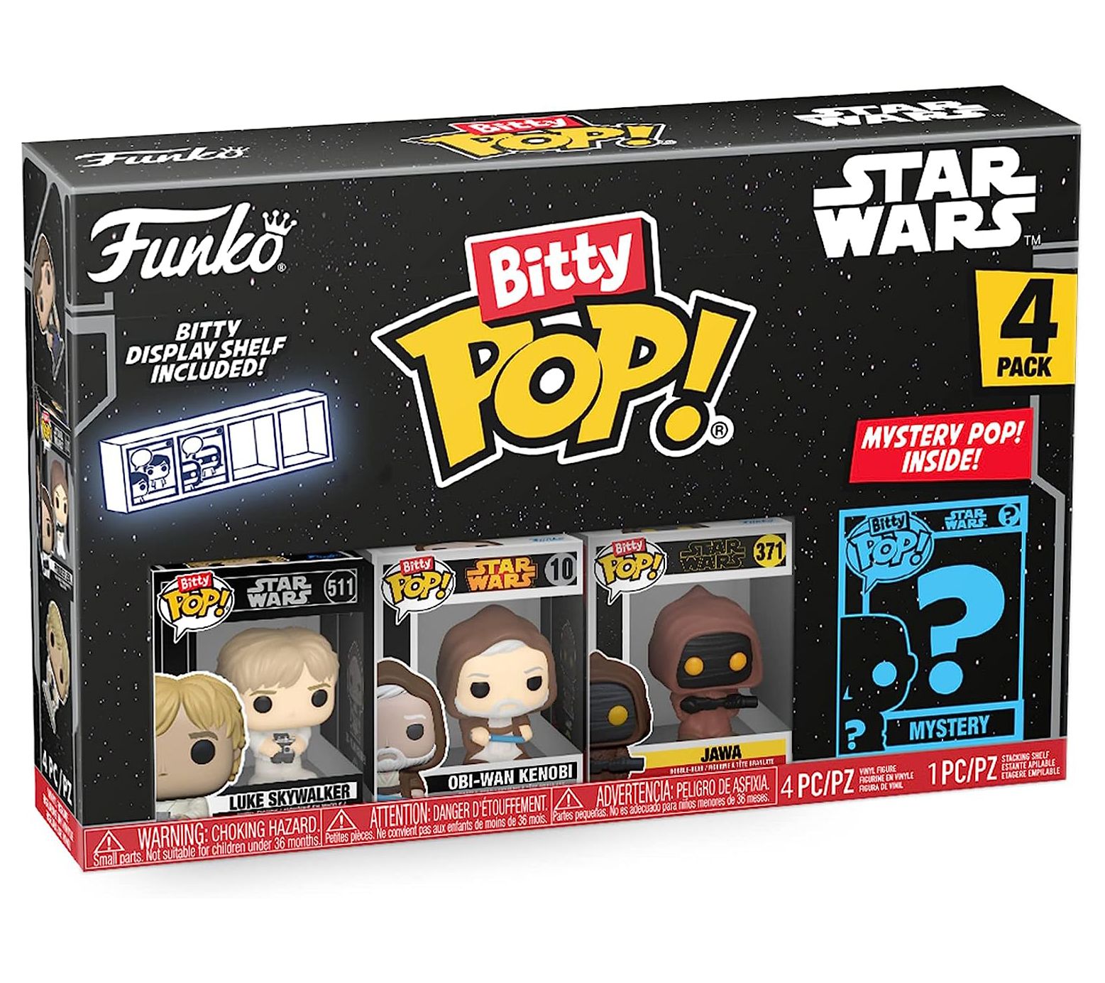 • Includes Luke Skywalker Bitty Pop!, Obi-Wan Bitty Pop!, Jawa trader Bitty Pop!, and a mystery Bitty Pop!