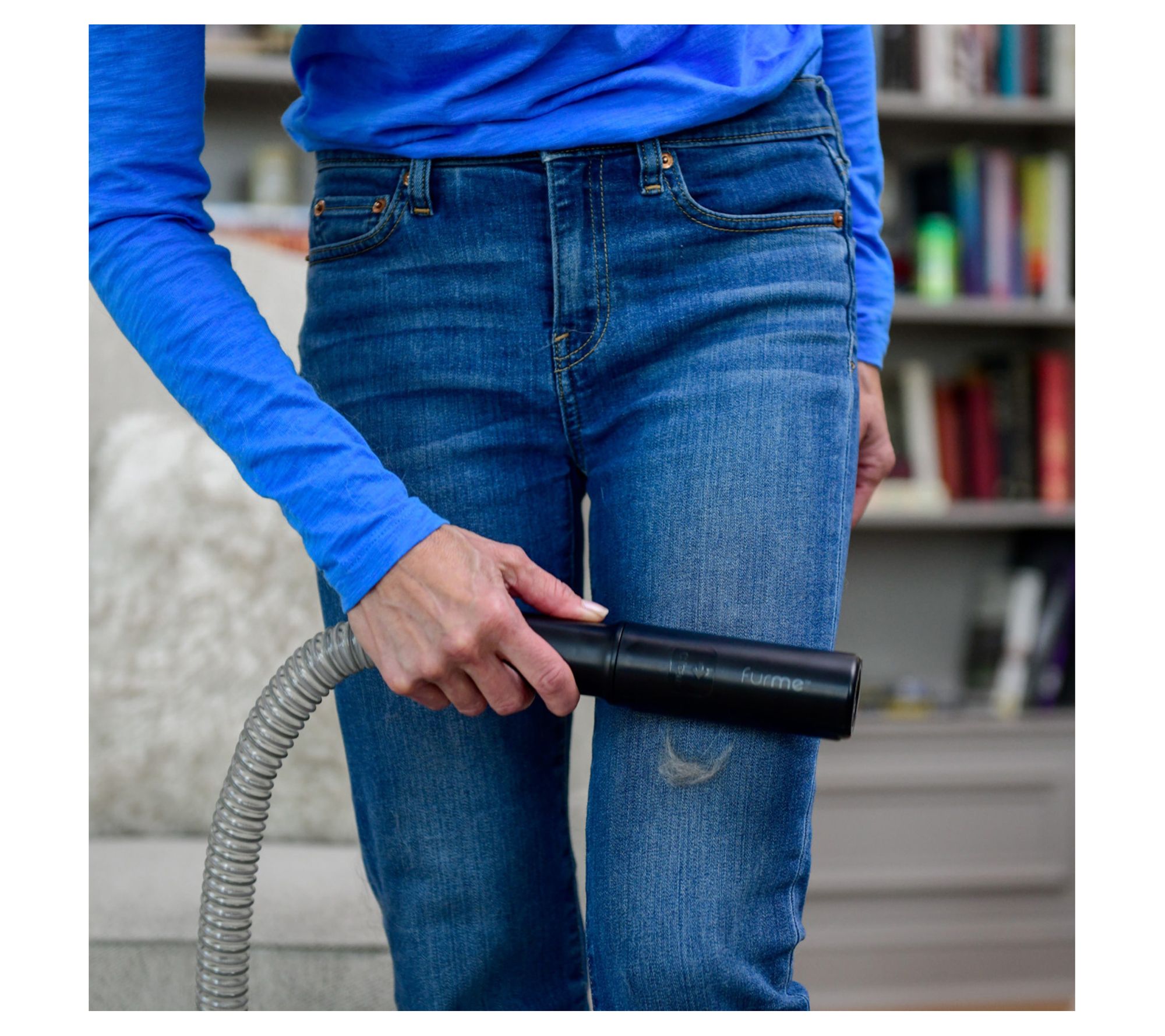 Keep your cloth surfaces like upholstered chairs and couches fur-free with the furMe reusable lint/fur remover wand attachment. This bonus pack also includes a tool organizer caddy to keep your grooming area organized and efficient. From furMe.