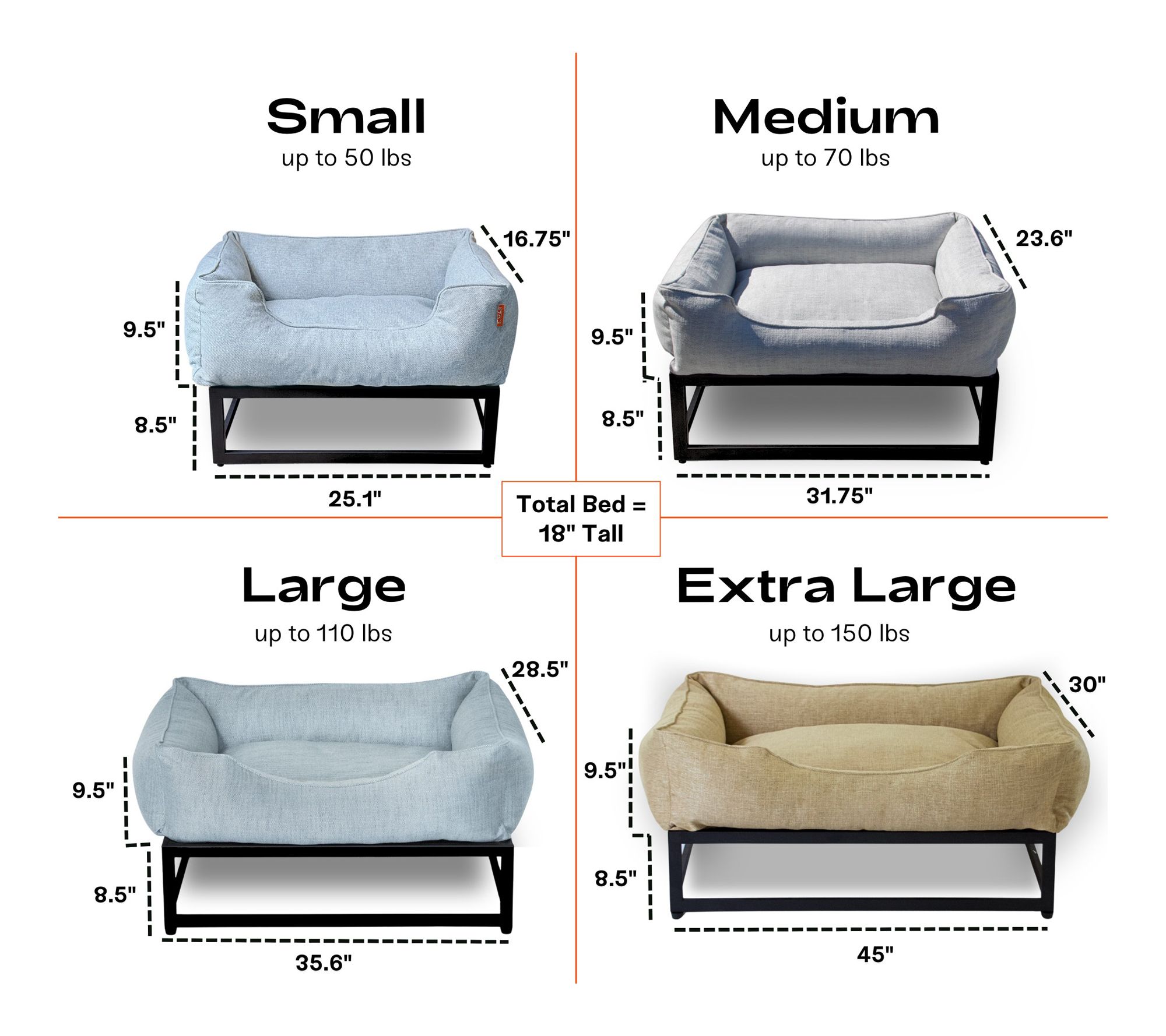 • 8" elevation improves airflow and provides orthopedic joint support