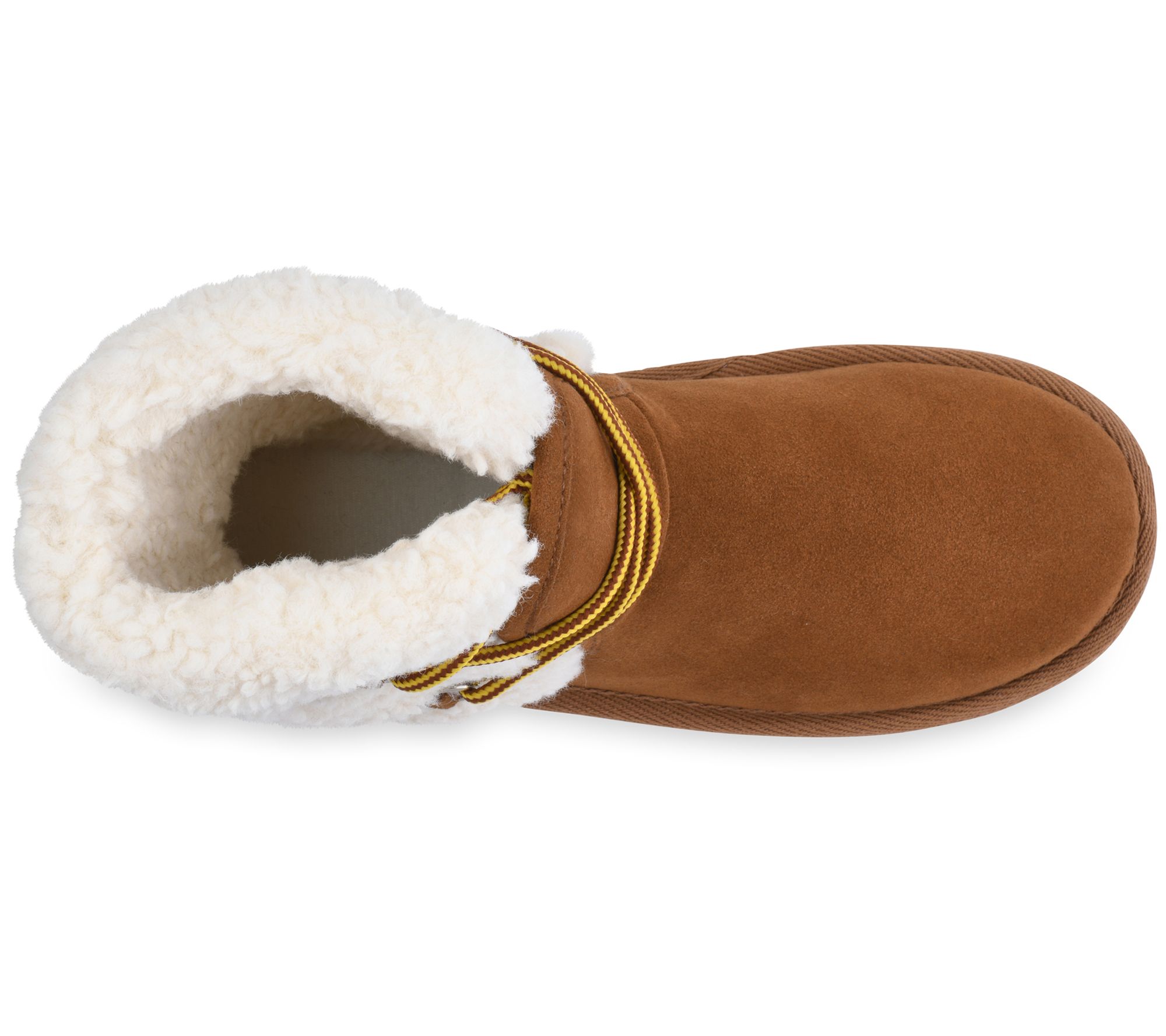- Pull-on, adjustable lace-up front, faux shearling lining, rounded toe