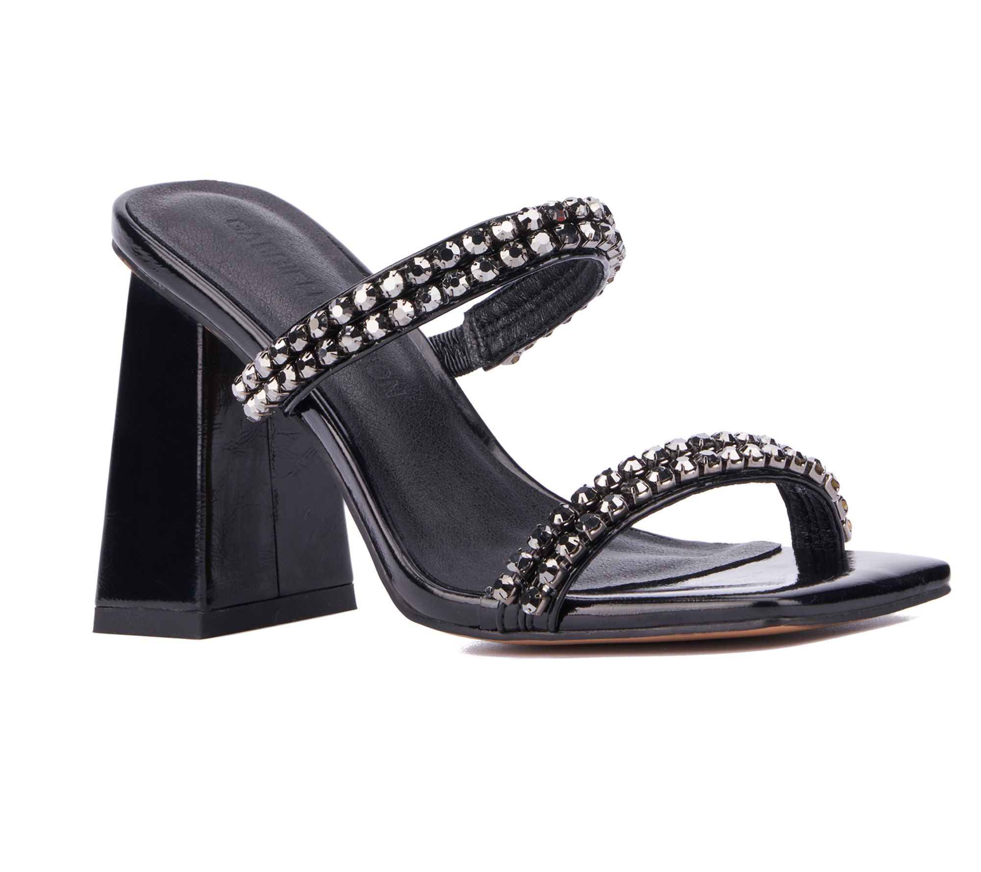 Let your style shine through with the Nadia, a double banded sandal embellished by rhinestones that shimmer with every step. From Gabrielle Union.