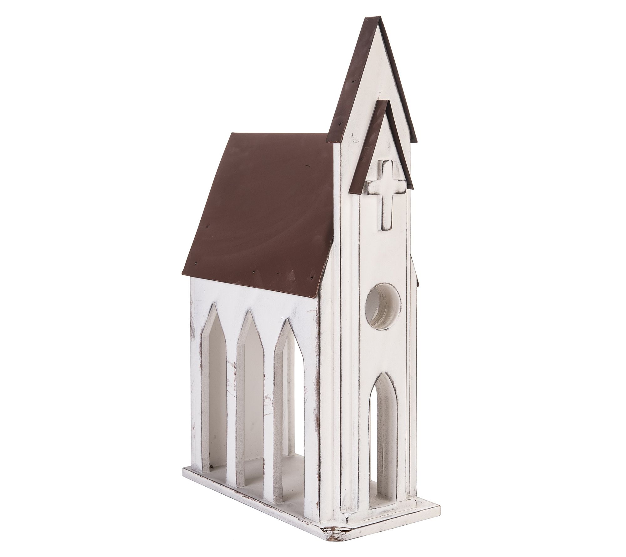 Gather your family and friends at the church this holiday season with the Rustic Church Card Holder. This stand displays the cards from Aunt Jen, the newsletter from cousin Marcus, and the Christmas photos from Mom so you can reclaim your mantle and your kitchen counter this season. Let this distressed church card holder fill your home with holiday cheer, while still leaving room for trays of gingerbread cookies! Size: 17.9 inches high x 5.1 inches wide x 9.8 inches deep;1 card holder