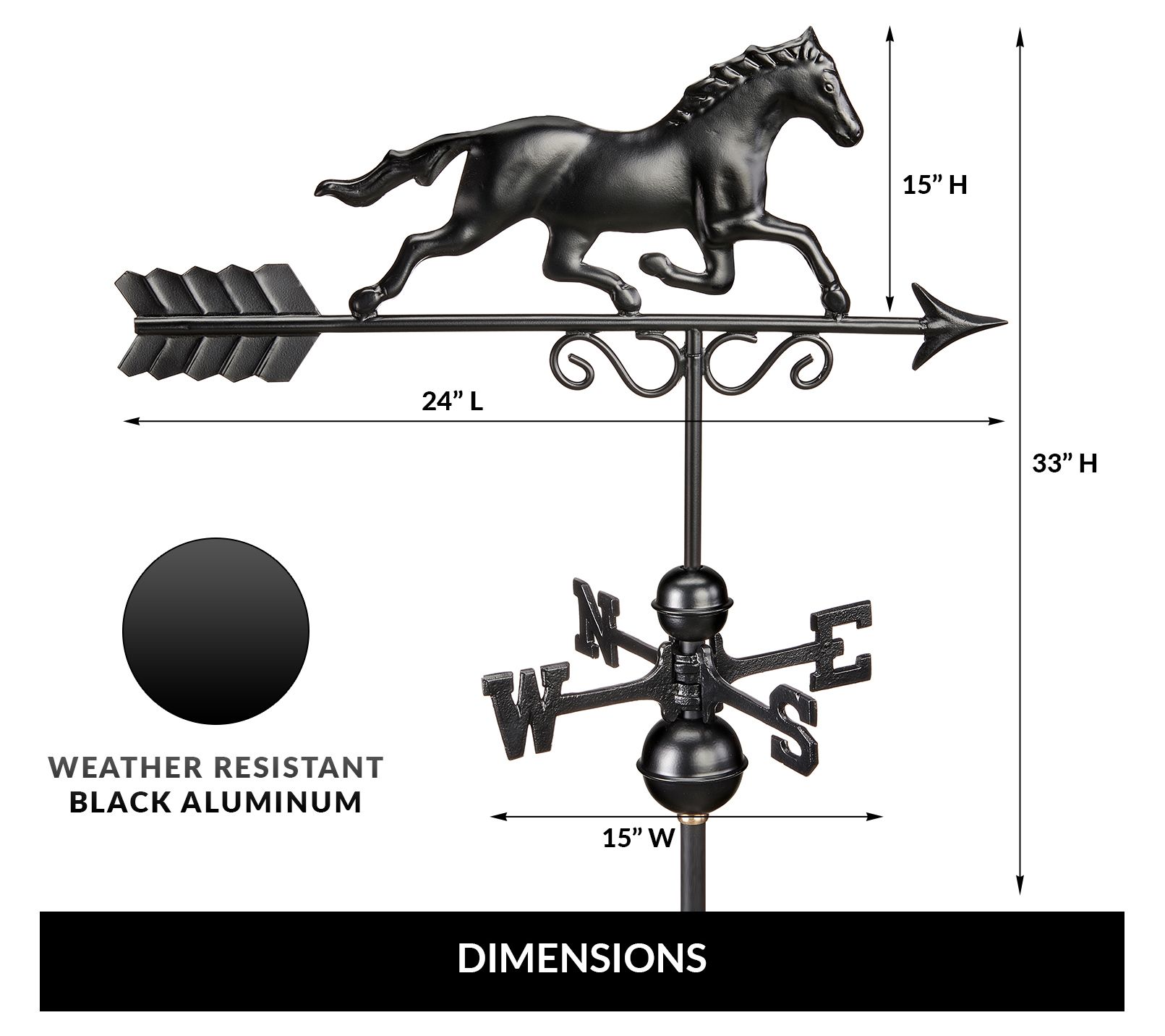 Galloping Horse Weathervane - Black Finish by Good Directions