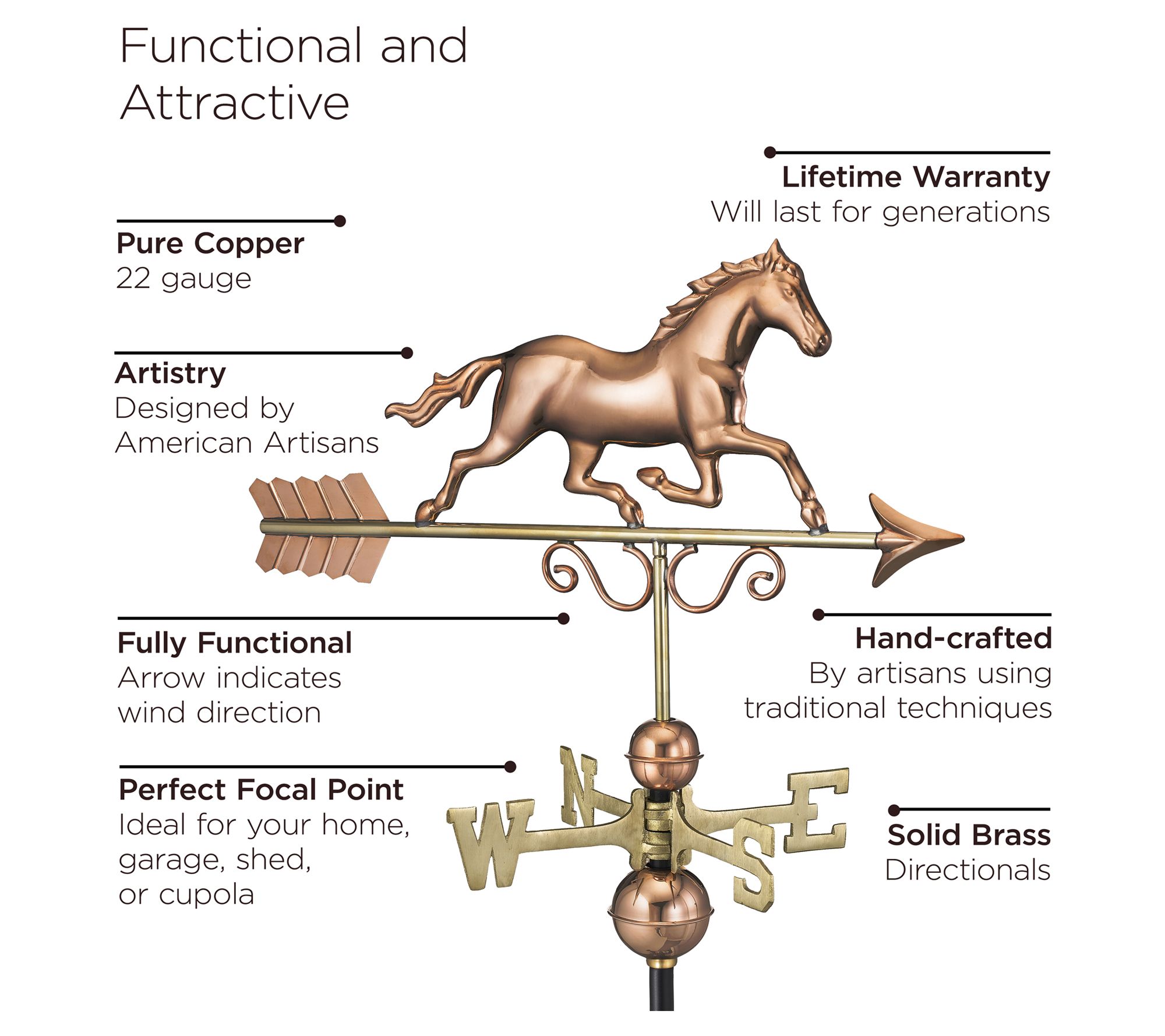 Galloping Horse Weathervane - Pure Copper by Good Directions