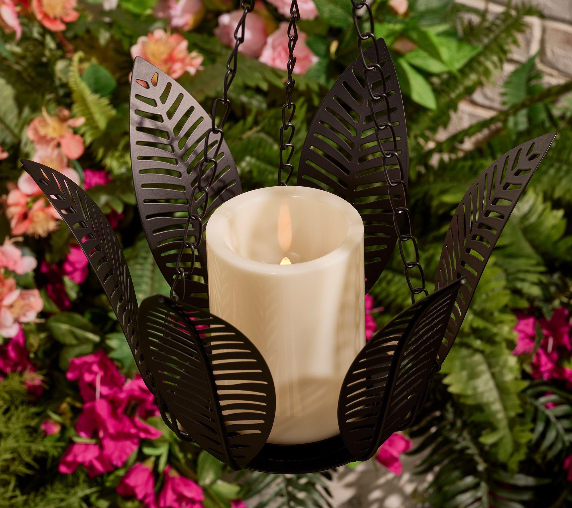 Garden Reflections Hanging Lotus Flowers with Outdoor Candles