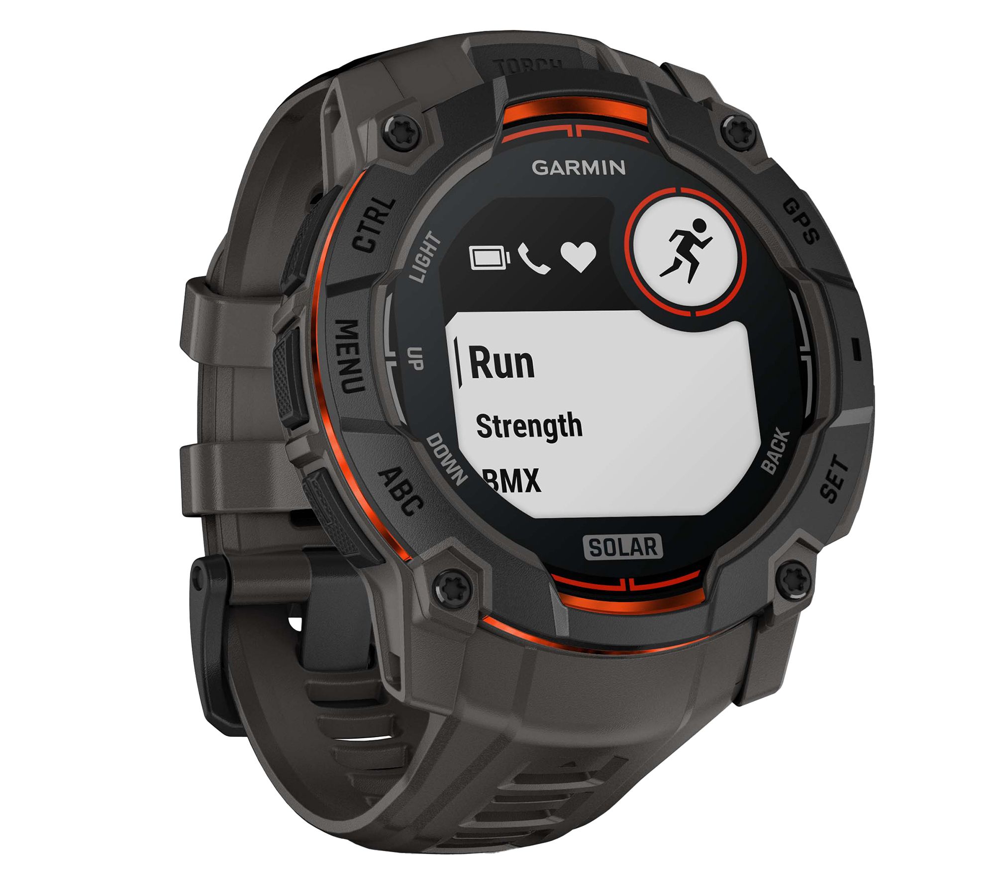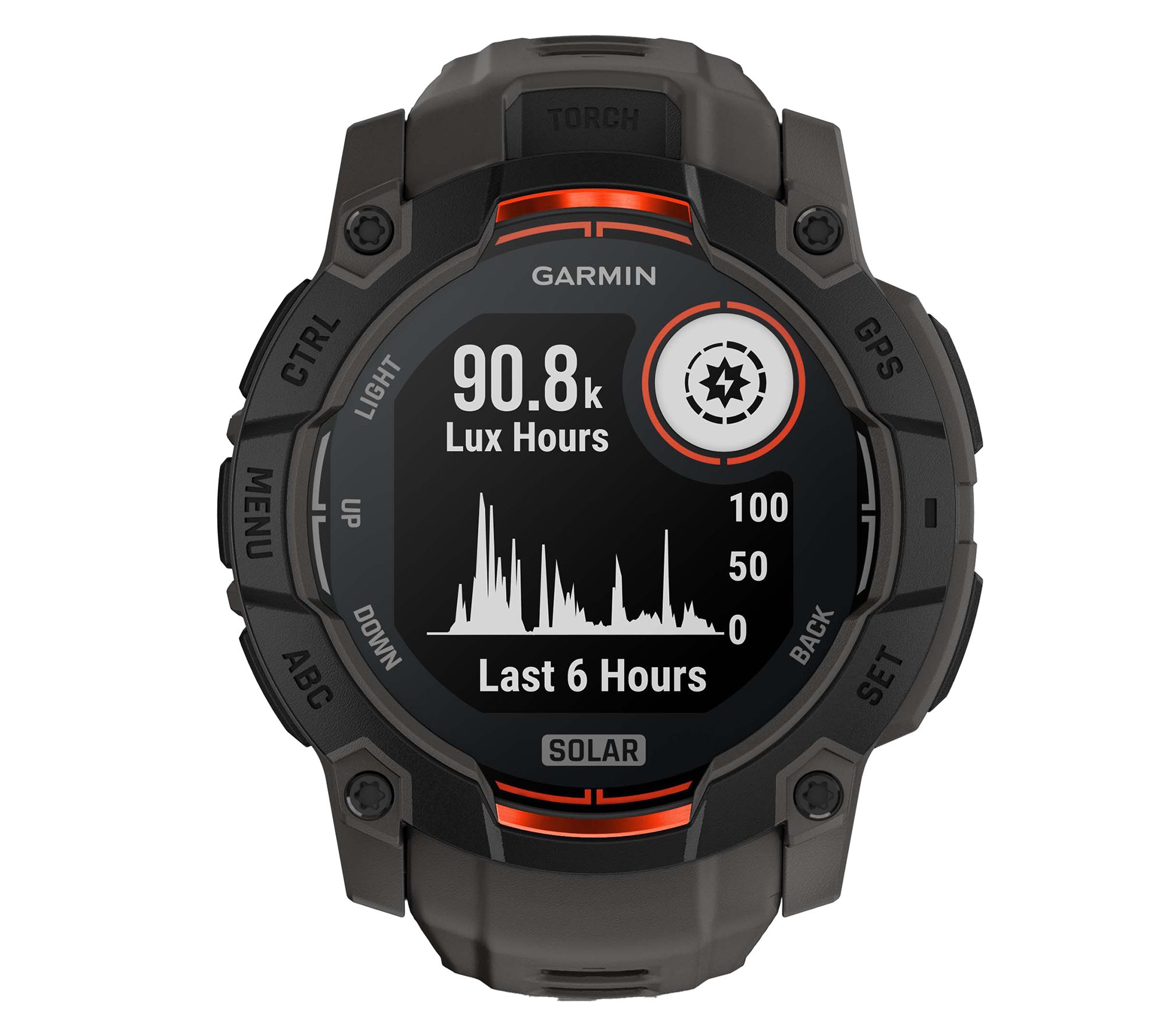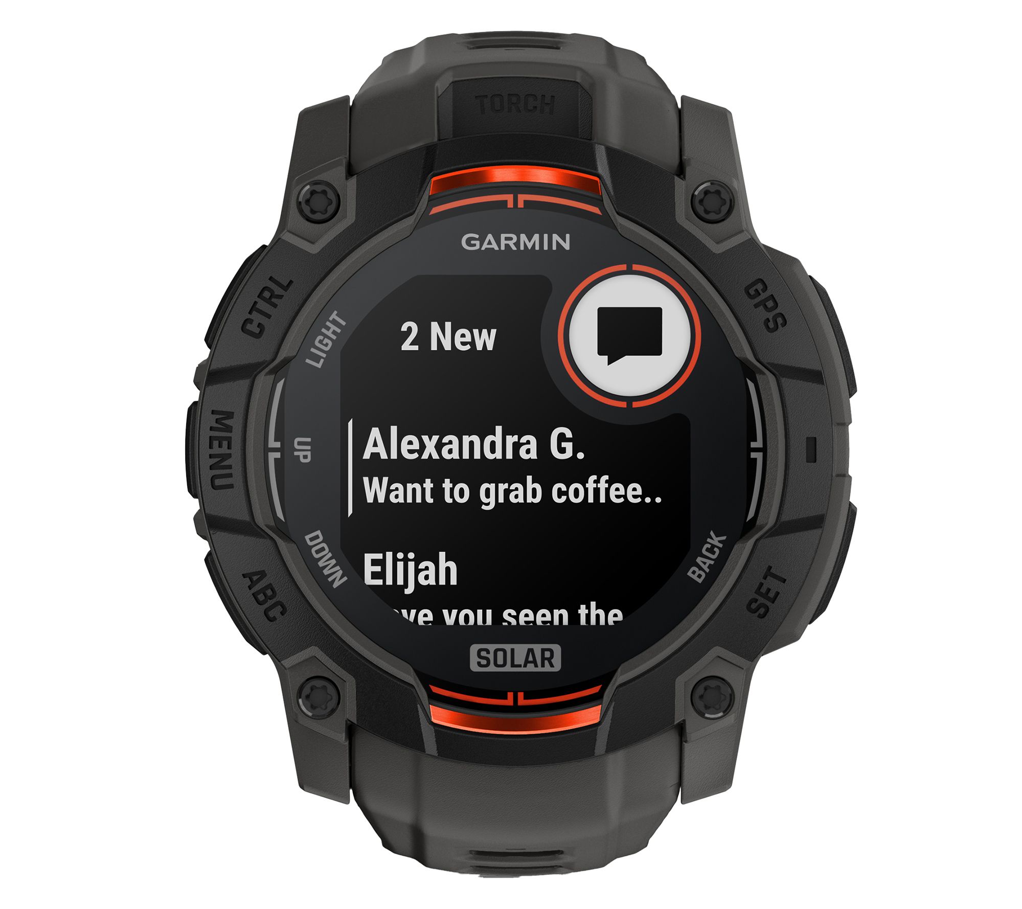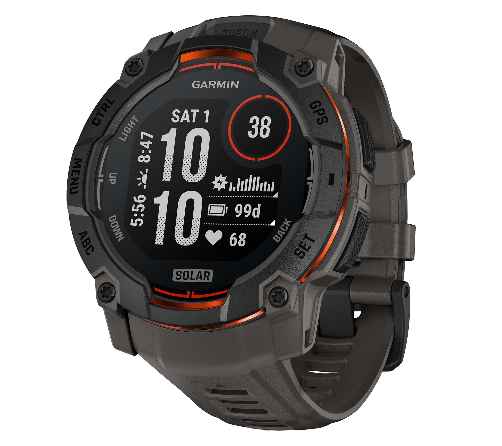 The Garmin Instinct 3 50-mm Solar GPS Smartwatch is the ultimate companion for your outdoor adventures. Equipped with a 1.1" display, solar charging lens, and unlimited battery life in solar mode, this rugged device features a fiber-reinforced polymer case and a metal-reinforced bezel. Stay connected and safe with built-in GPS, smart notifications, and health monitoring. From Garmin.