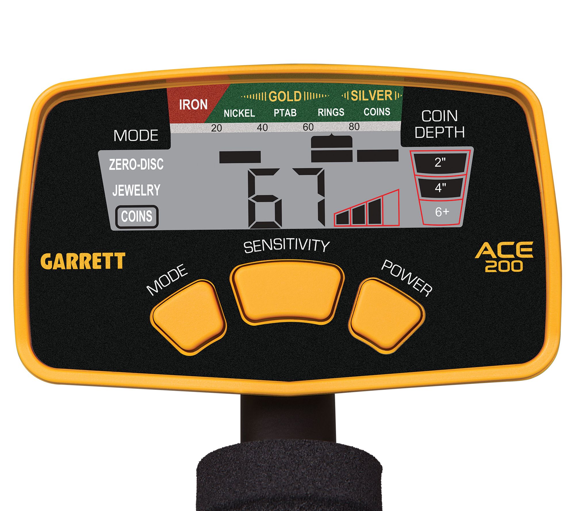 The ACE 200 is the perfect way to take up treasure hunting, featuring a digital target ID scale, target depth indicators, three search modes, and four sensitivity adjustments. From Garrett Metal Detectors.