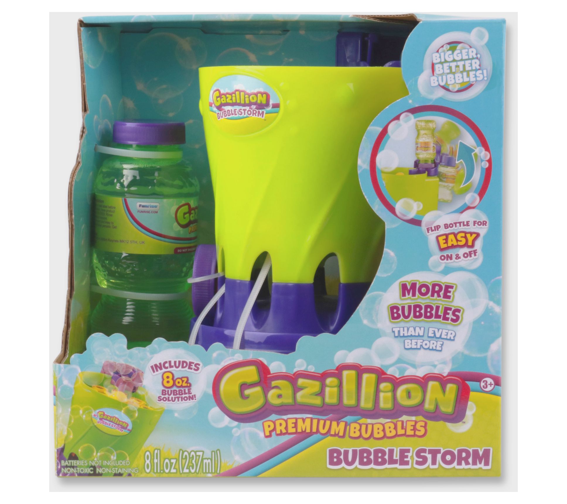 • Includes bubble machine, tray, and 8-oz bottle of Gazillion Premium Bubbles solution