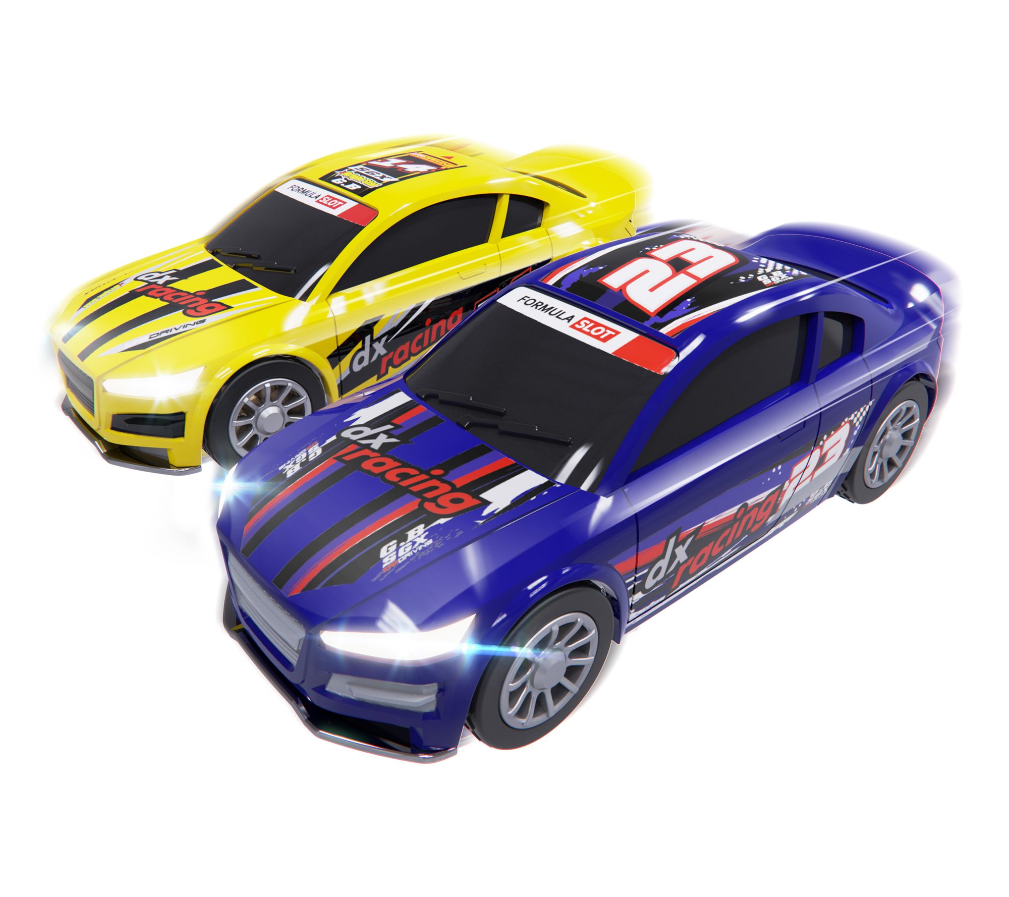 • Includes two race cars, two speed controllers, lap counter, straight tracks, curve tracks, crossover tracks, start-finish sign post, and guard rails