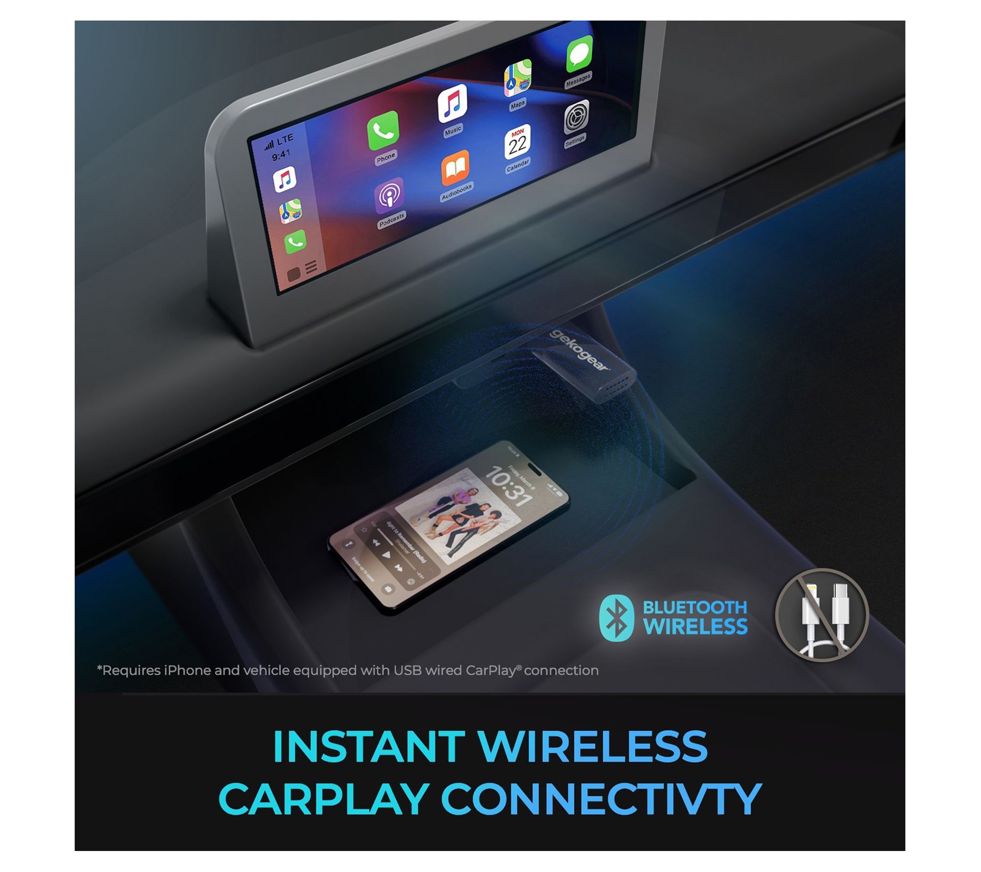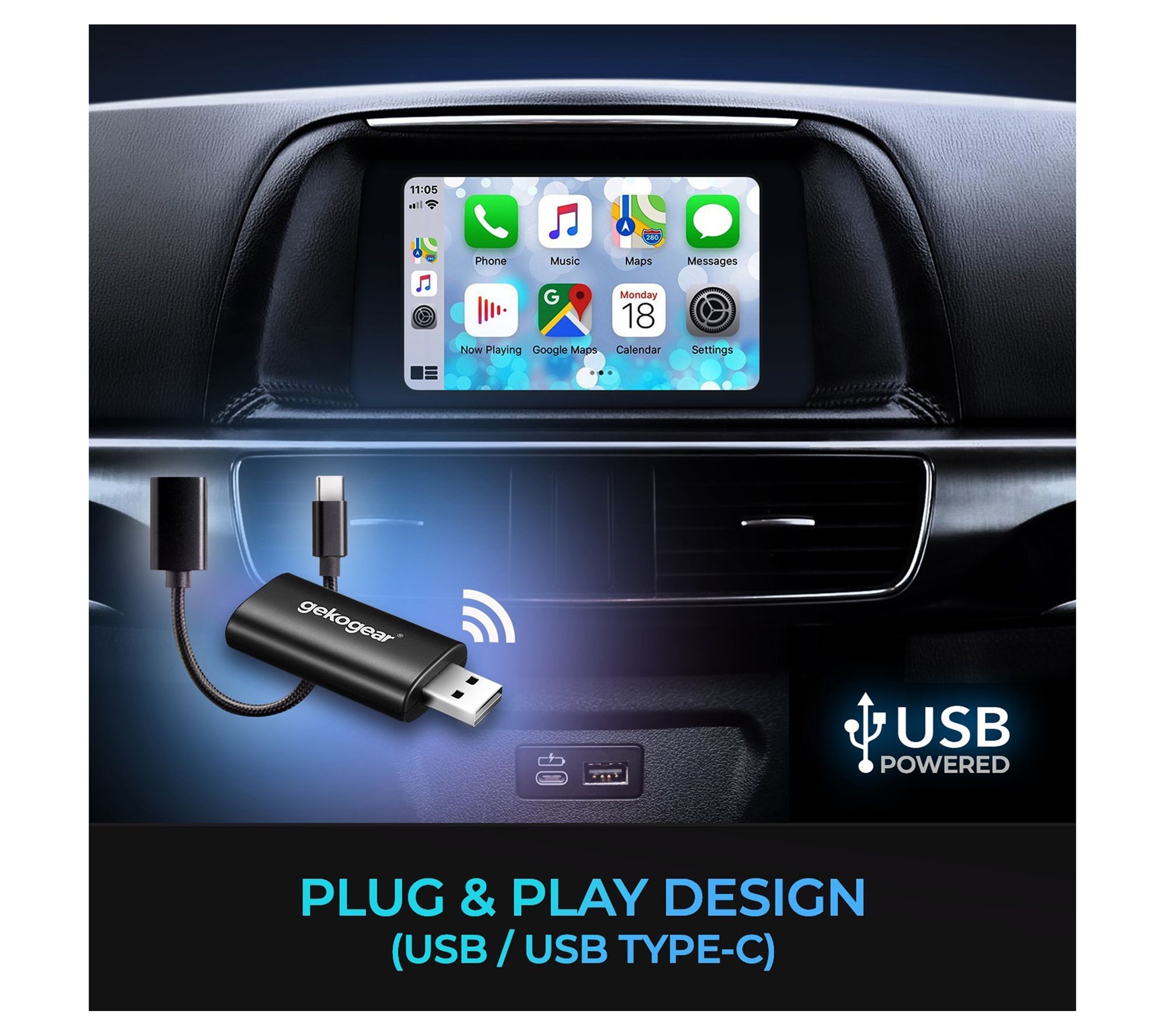 GekoGear Orbit A100 Bluetooth Dongle Adapter for Apple CarPlay