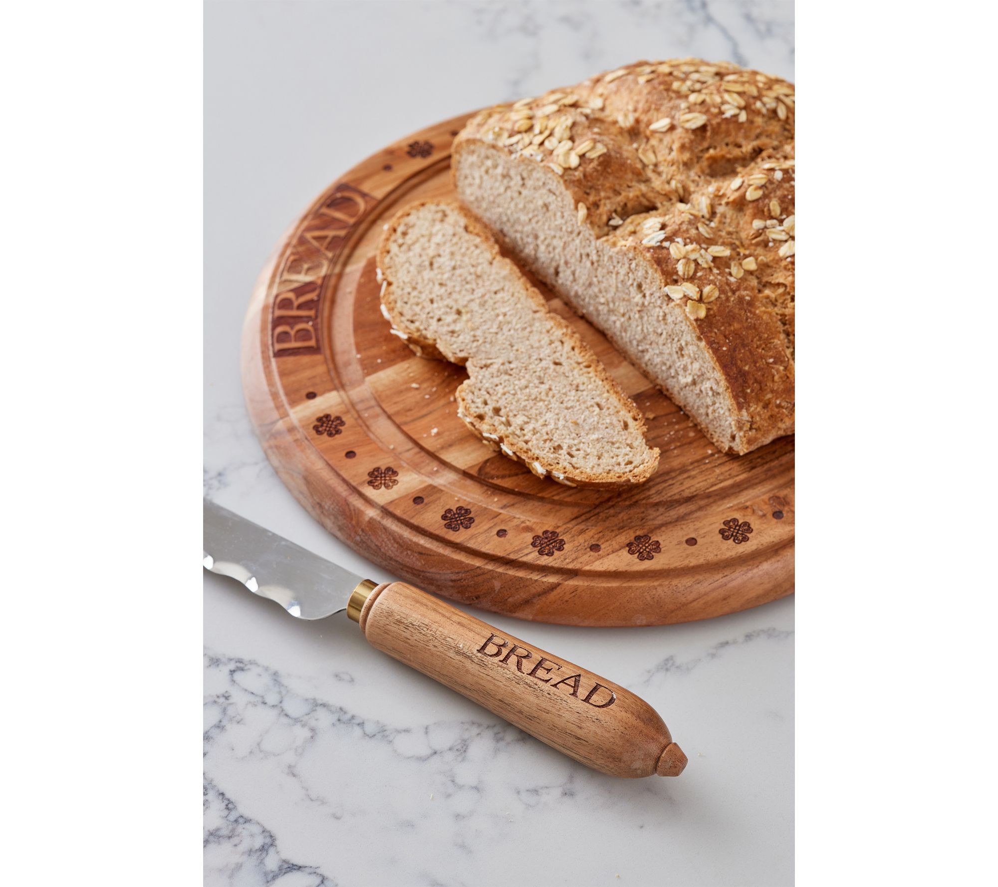 Set out a rustic spread at your next family meal with this Celtic bread board and knife set. Whether you're slicing a crusty loaf, arranging cheese, or serving appetizers, the generous surface gives you ample space for preparation and presentation. Easy to care for and designed for busy kitchens, this versatile set is ready to take on everything from everyday snacks to special get-togethers. From GemmaMade.