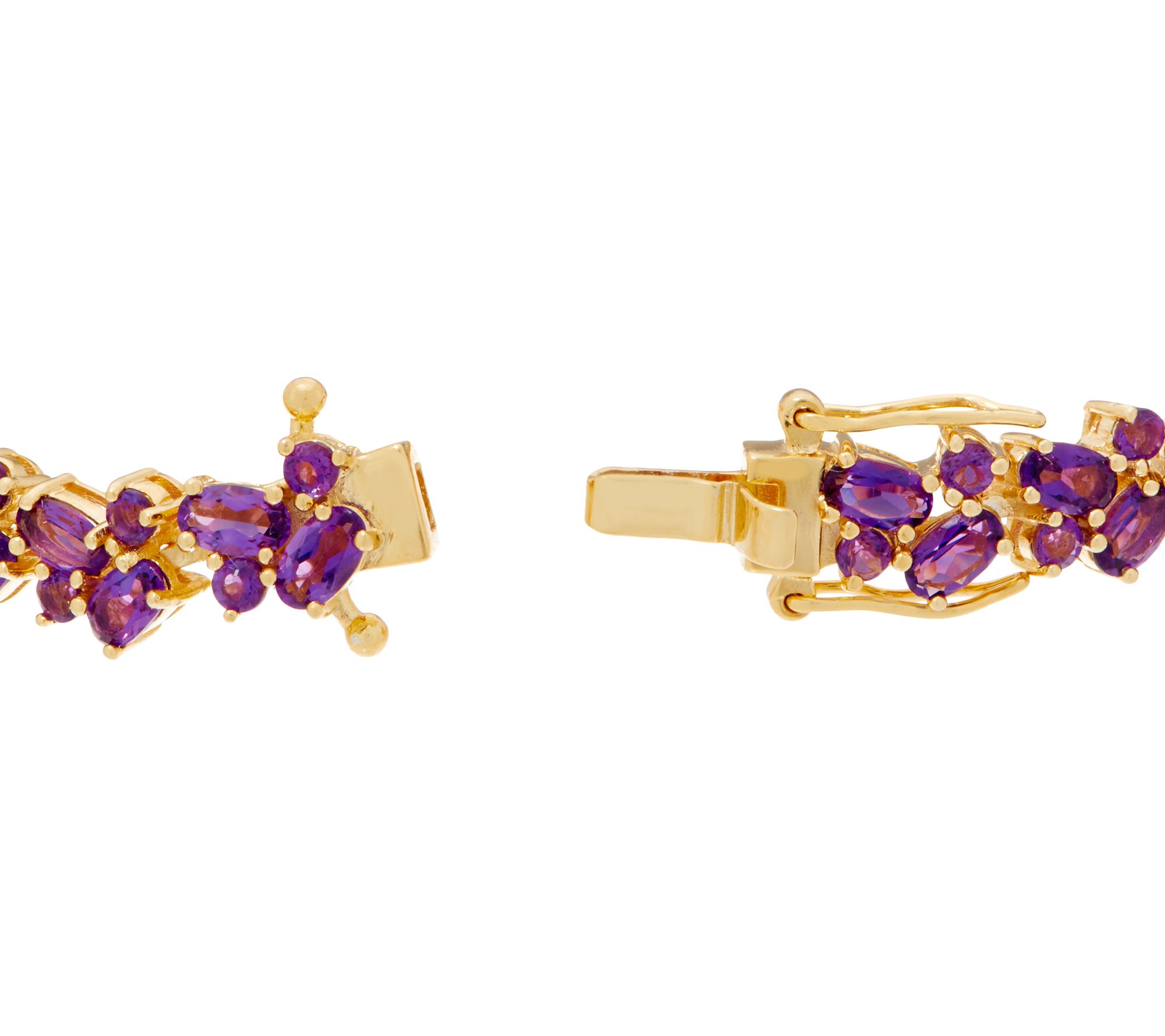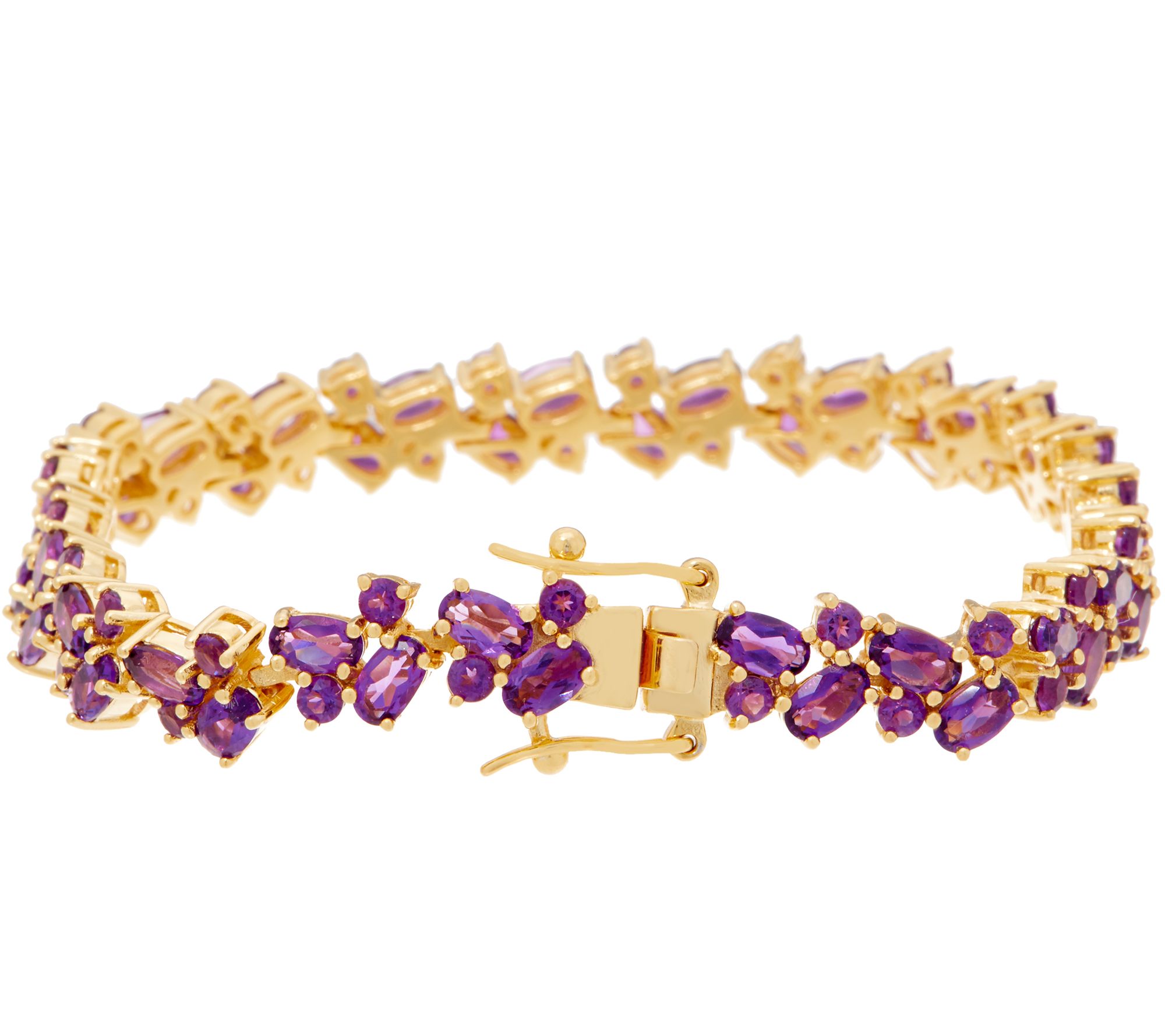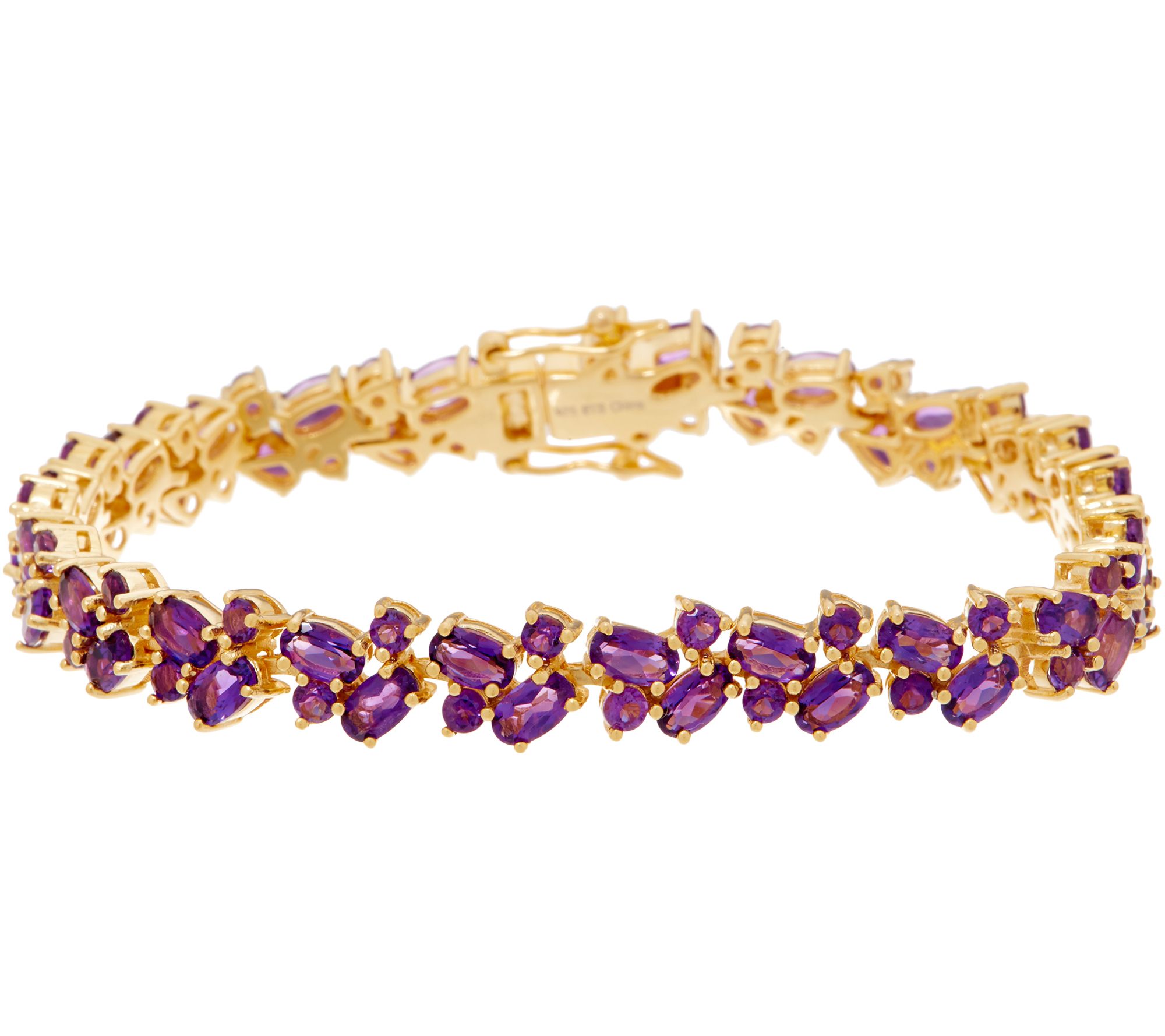 A striking staggered design of oval and round gemstones create this smashing tennis bracelet.