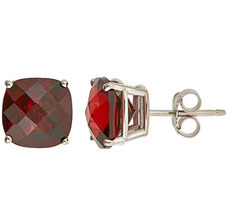 • Basket stud design; prong-set, cushion semiprecious gemstone with checkerboard top