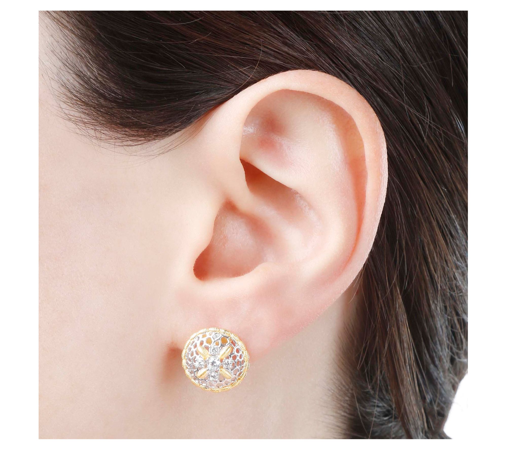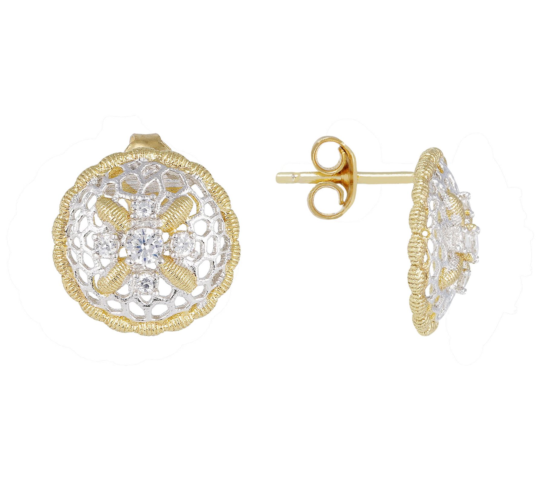 When the occasion calls for radiance, you'll be ready with these two-tone, openwork button earrings topped with glittery white topaz. From Genesi by Mario Buccellati.