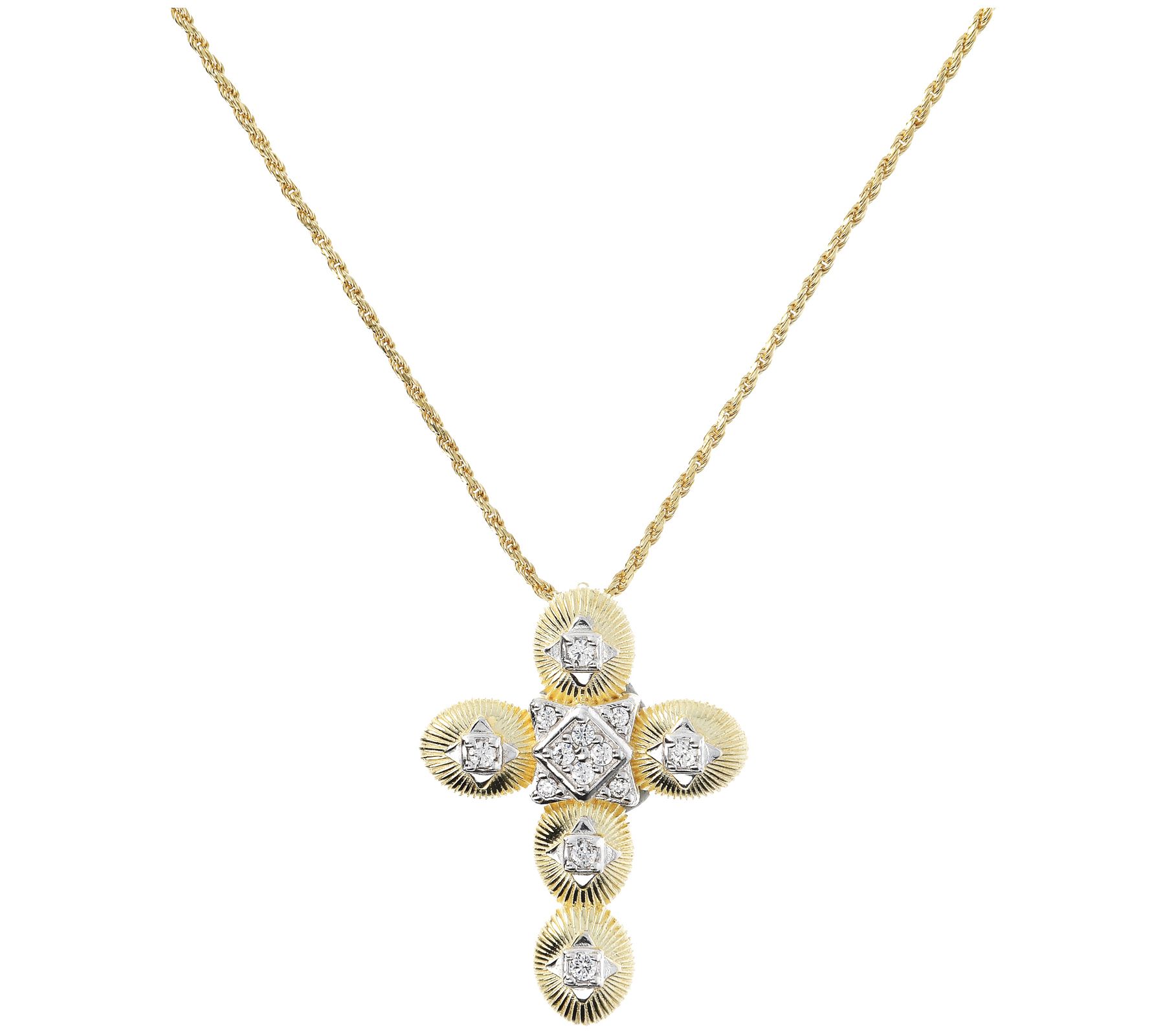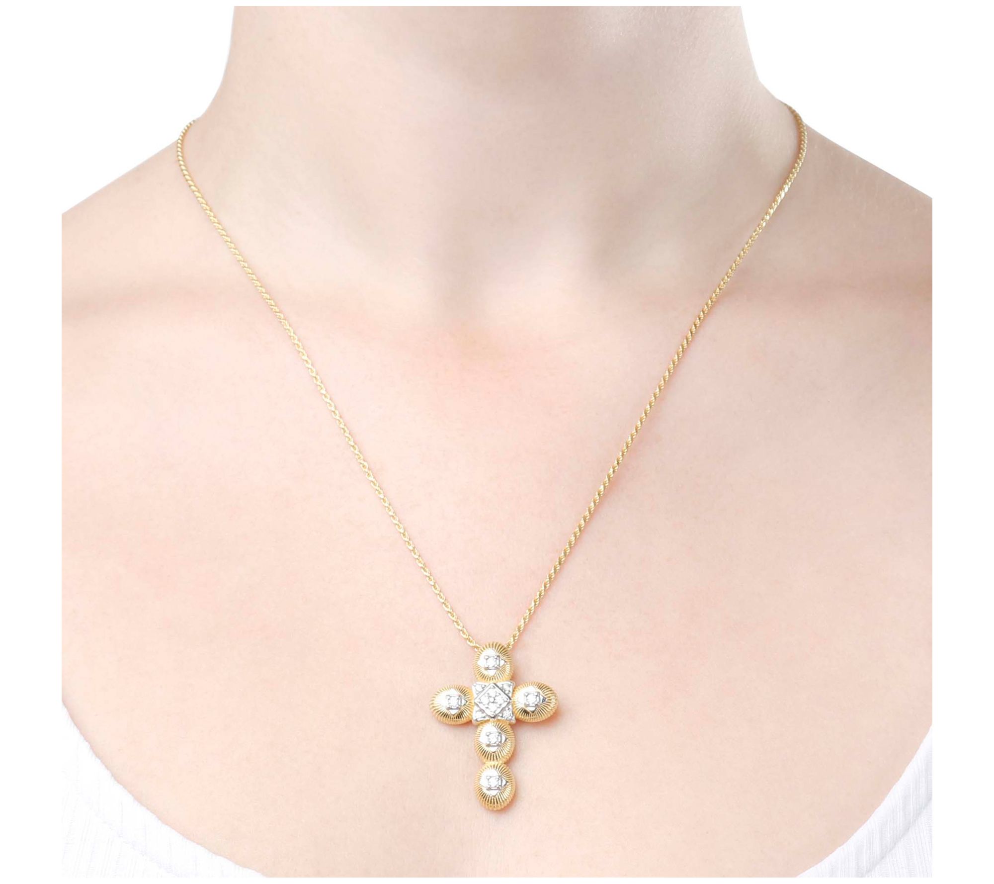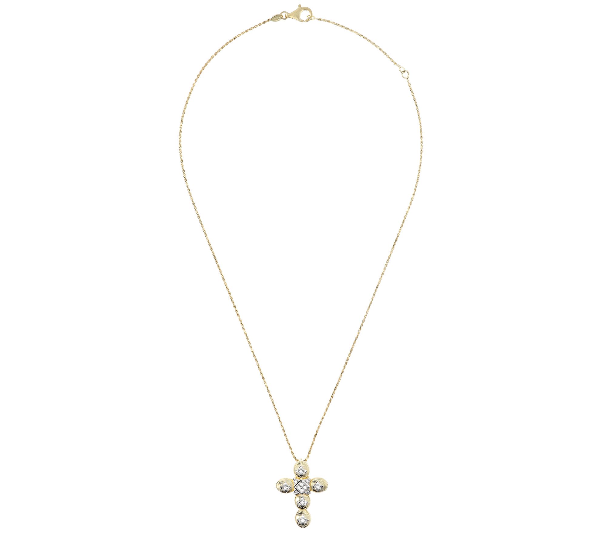 Celebrate your spirituality with this gorgeous cross pendant. Made up of white topaz gemstones and textured details set around a white topaz gemstone, it makes for a bold, eye-catching statement of faith. From Genesi.
