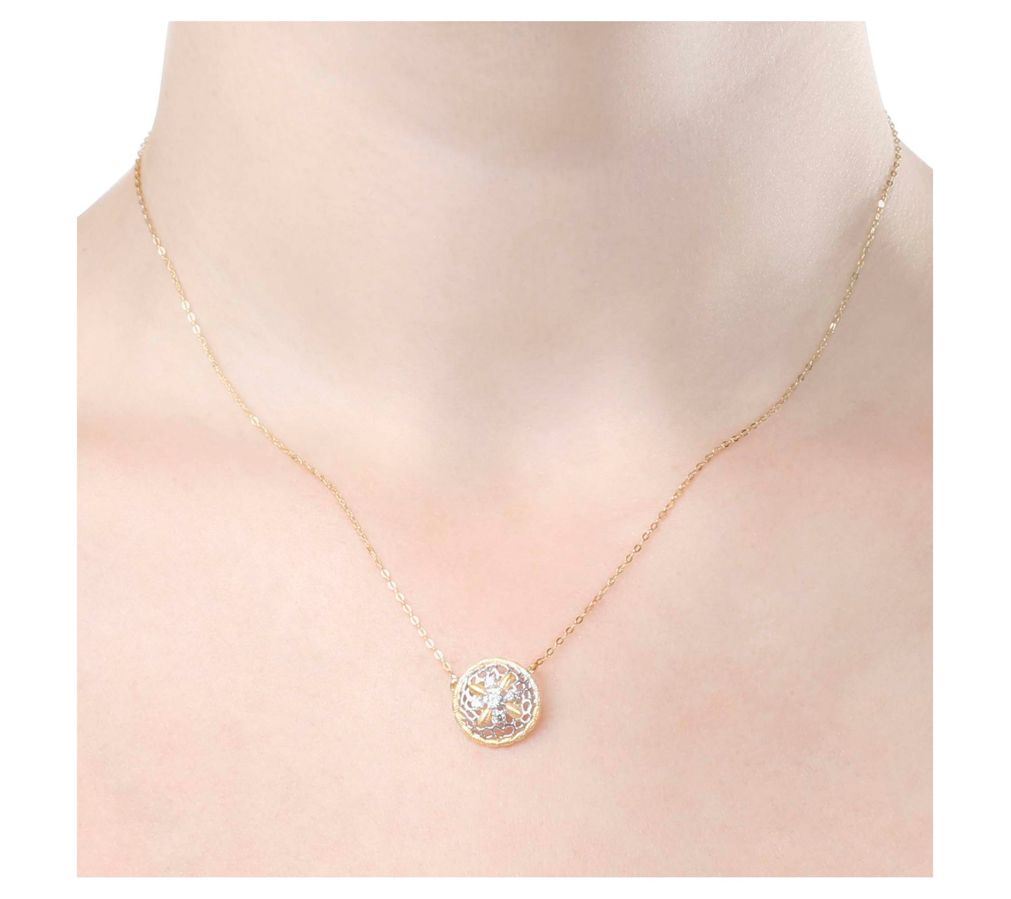 Genesi Two-Tone White Topaz Openwork Disc Neckl ace