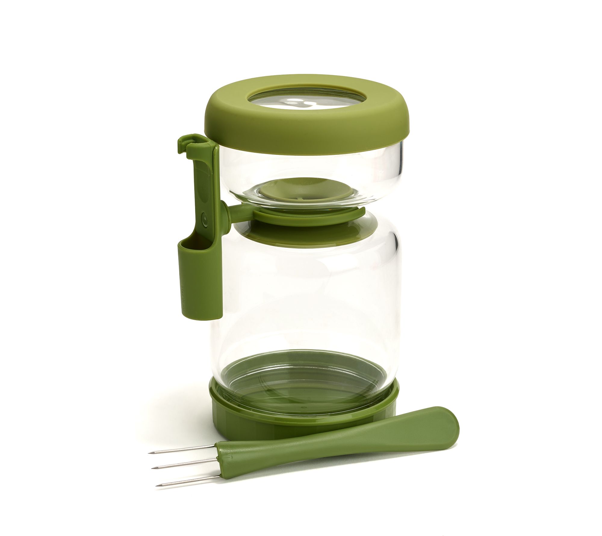 In a pickle about how to contain your condiments? This pickle and olive storage jar is ready to keep your favorite snacks crisp and accessible, with an included rotating fork that lets you serve straight from the fridge with no mess. Its wide mouth makes refilling and draining simple, so you're always prepared for impromptu gatherings or everyday snacking. From Genicook.