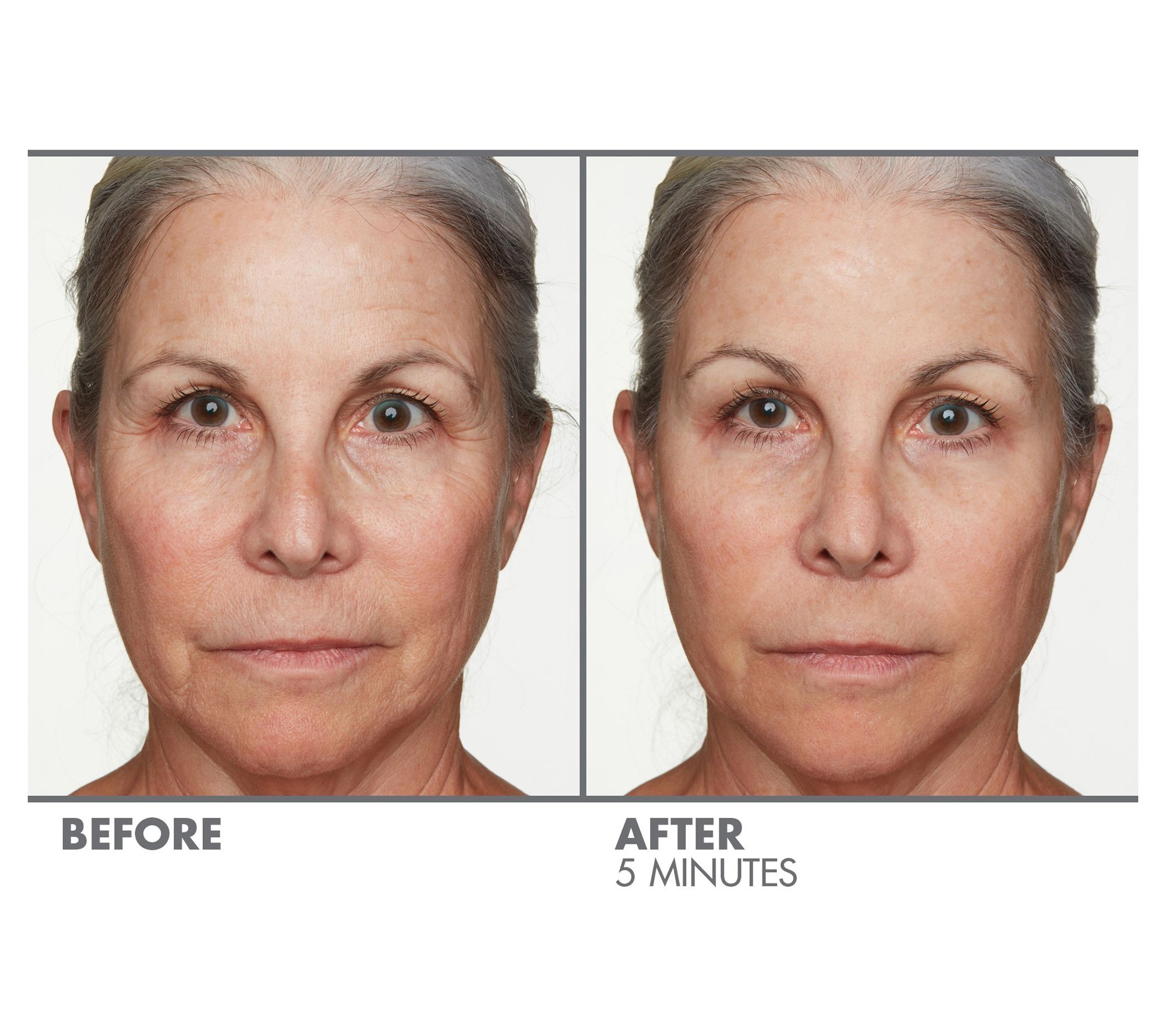 Genie Instant Line Smoother instantly smooths away the appearance of fine lines and wrinkles. It goes on clear and dries clear instantly. It doesn't take two months, two weeks, or two days to see results -- just two minutes. Use it from your hairline to your bust line -- on the wrinkles around your eyes, mouth, forehead, lips, neck, and decollete -- anywhere you want to look younger and smoother. It works with any skin-care regimen or makeup you currently use, and can be mixed into your liquid foundation.
