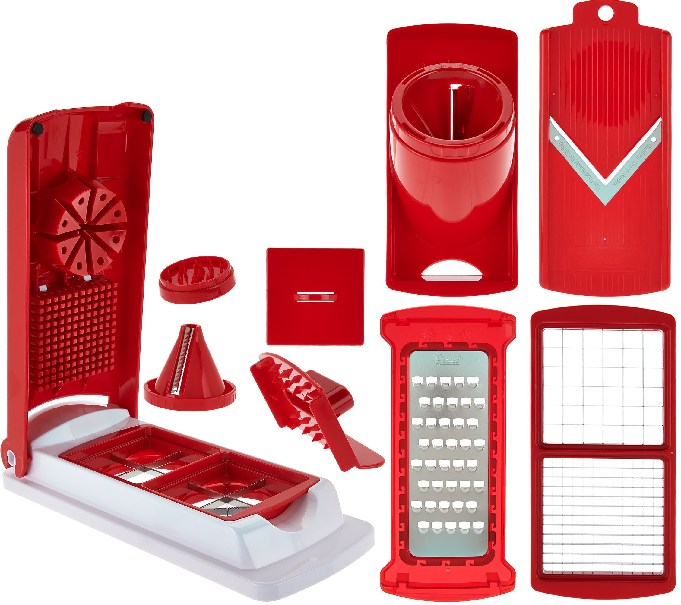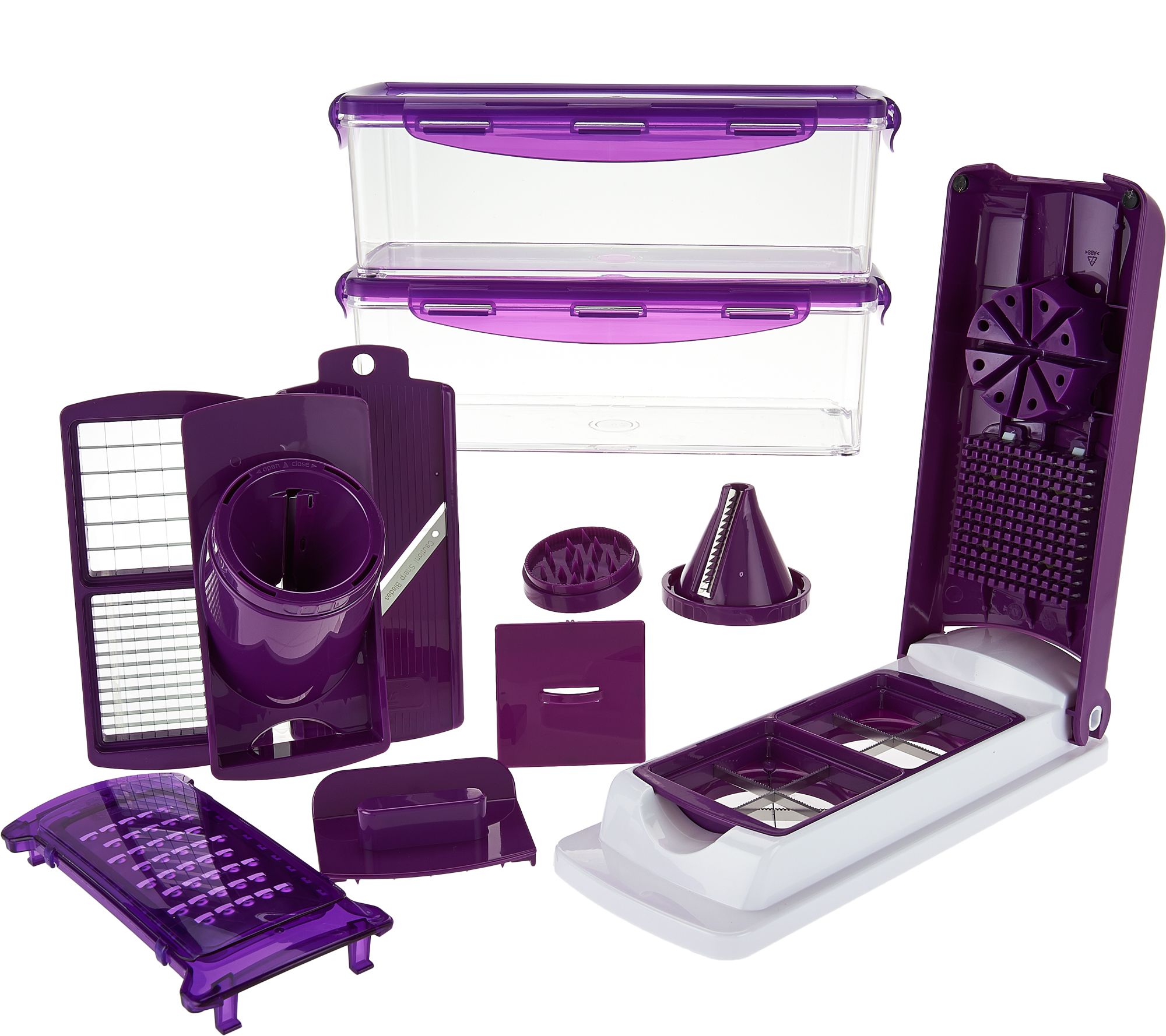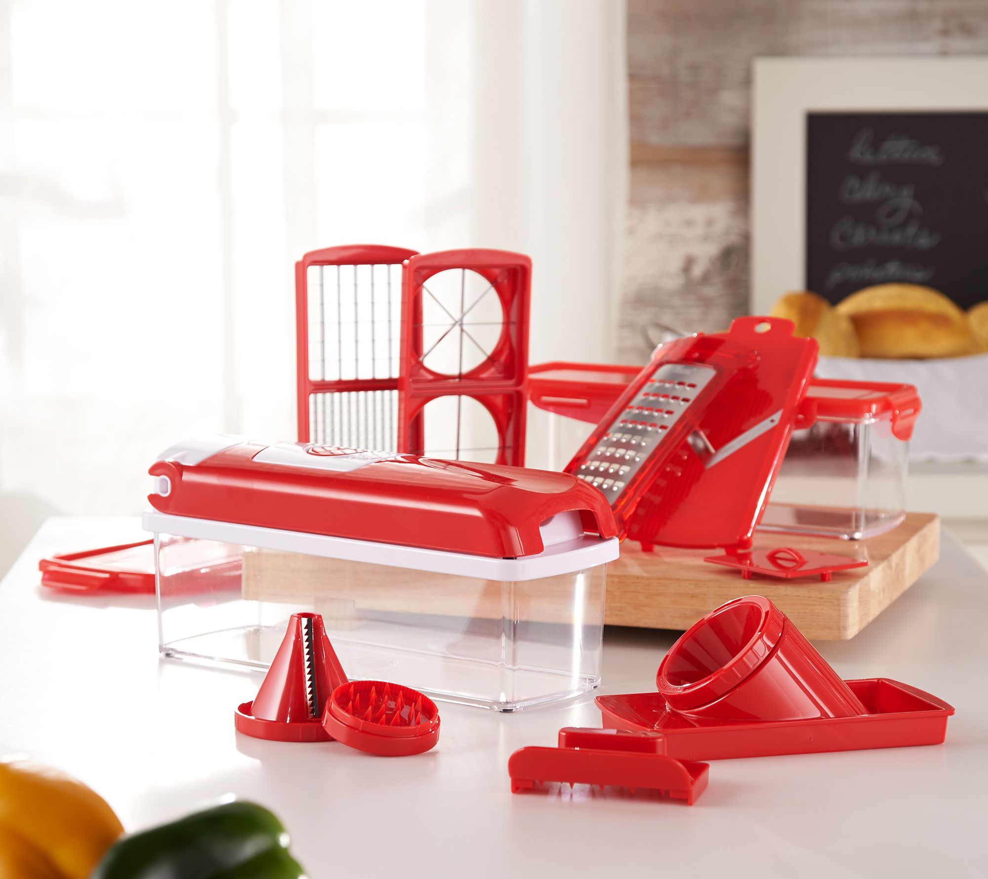 Smarter start. With the Genius Nicer Dicer Plus, tackle a variety of tedious tasks in the kitchen with one great gadget. Slice, dice, grate, and more with a selection of handy blades, ingenious inserts, and two containers with lids to collect your freshly prepped food. From Genius.