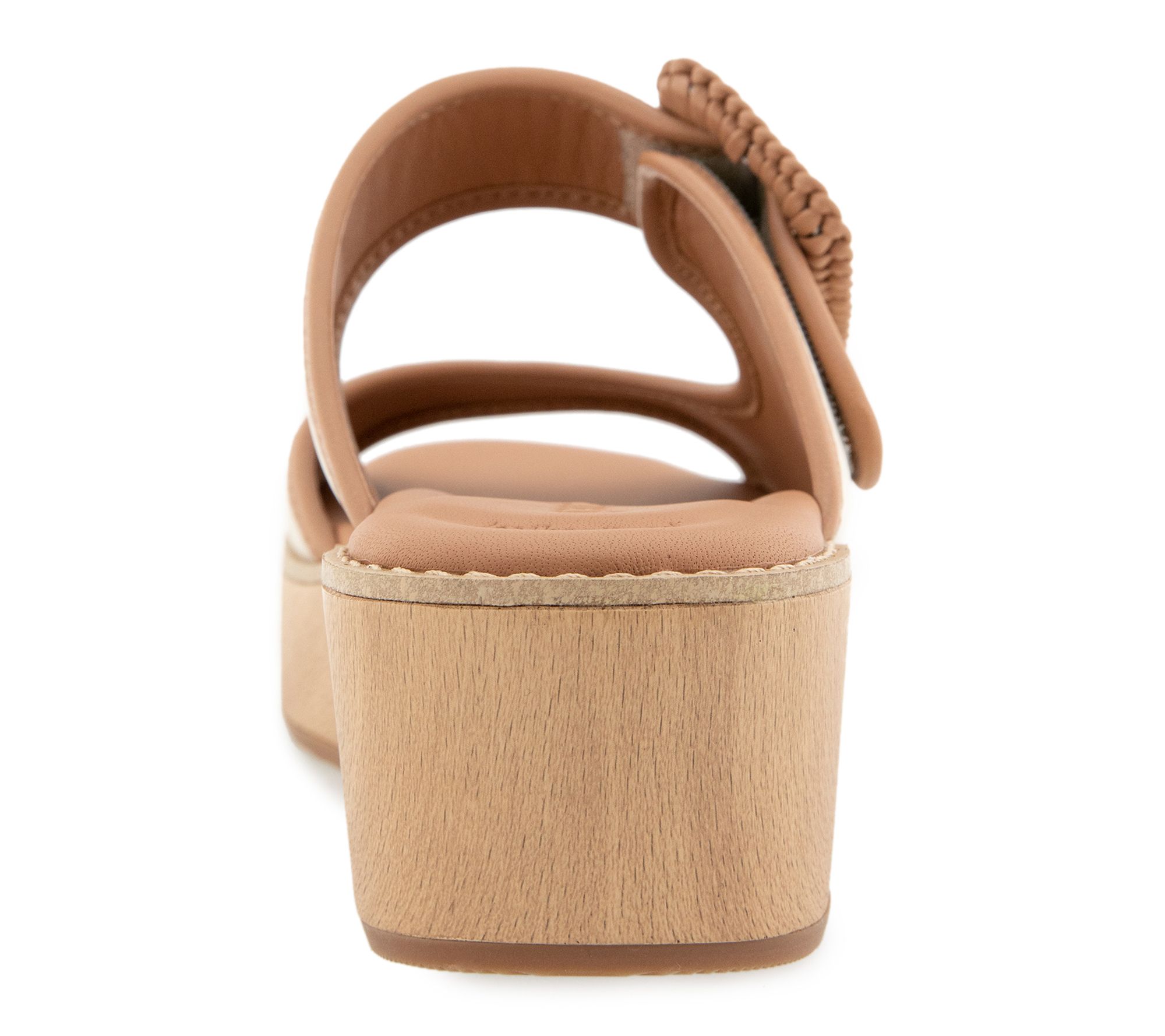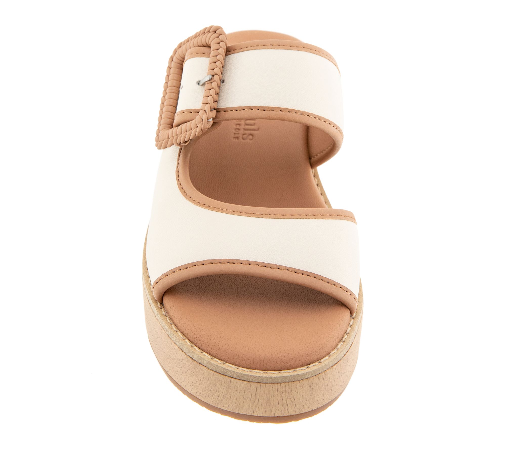 Adjustable strap design, open toe, leather-wrapped buckle