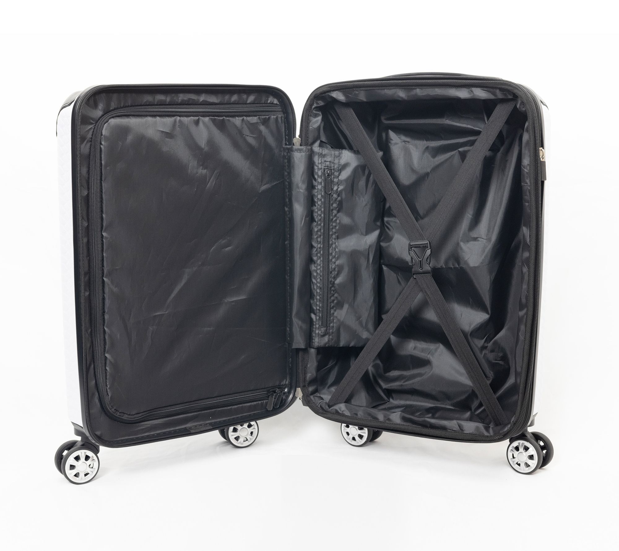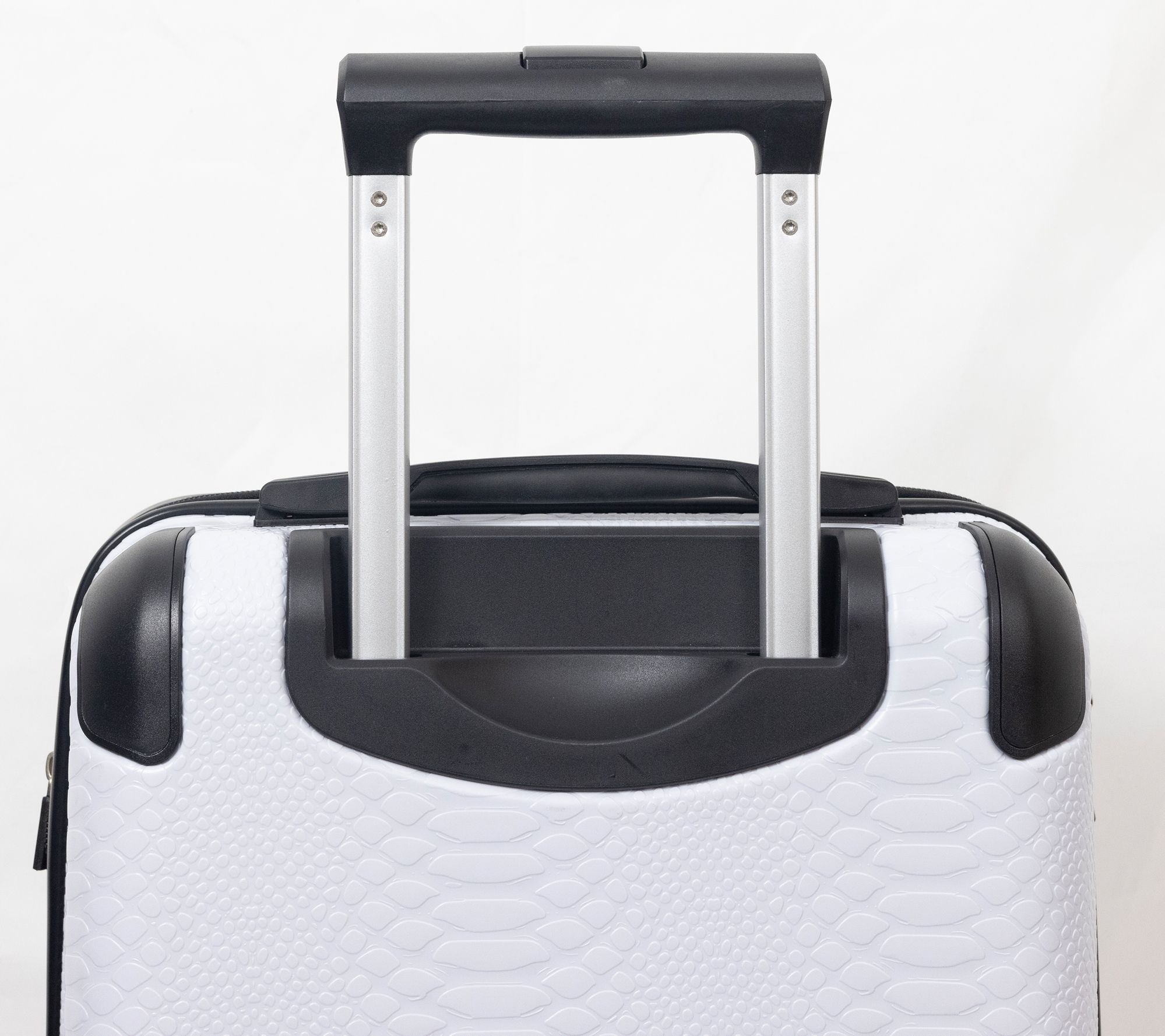 • Snake-embossed finish, 360-degree spinner wheels, push-button telescopic handle system, expansion-zip closure