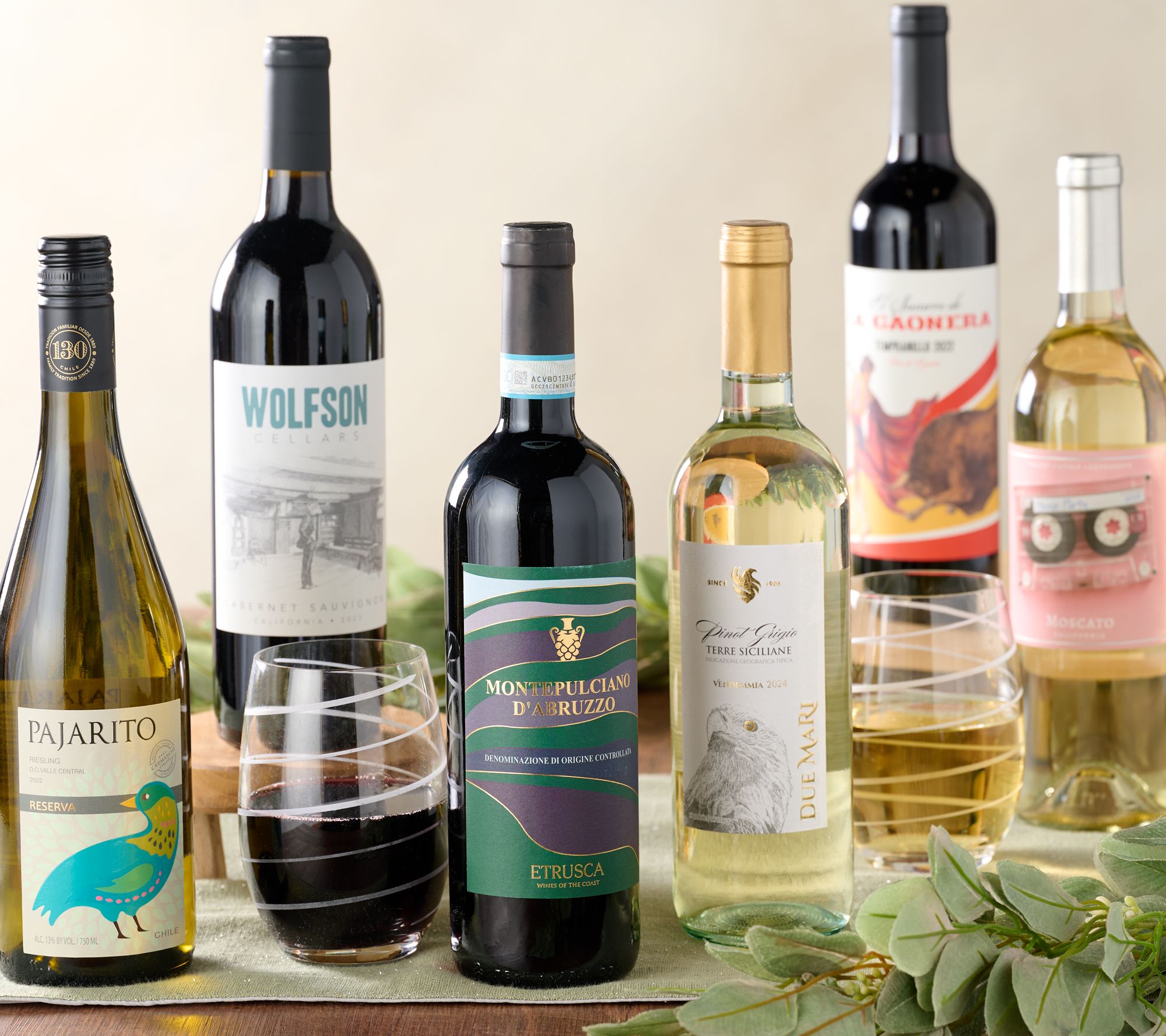 Geoffrey Zakarian has selected his choice holiday wines from around the world so you don't have to! In this 12 bottle offer choose from reds:4 each Cantina Etrusca Montepulciano d'Abruzzo (Italy 2023), El Susurro de la Gaonera Tempranillo (spain 2022) & Wolfson Cellars Cabernet Sauvignon (California 2023), Whites: 4 each Due Mari Pinot Grigio (Italy 2024), Pajarito White Blend Reserva (Chile 2022),& House Party Moscato (california 2024), or Mixed Case 2 bottles of each red & white listed. Ships via fedex. Includes 3 recipe cards