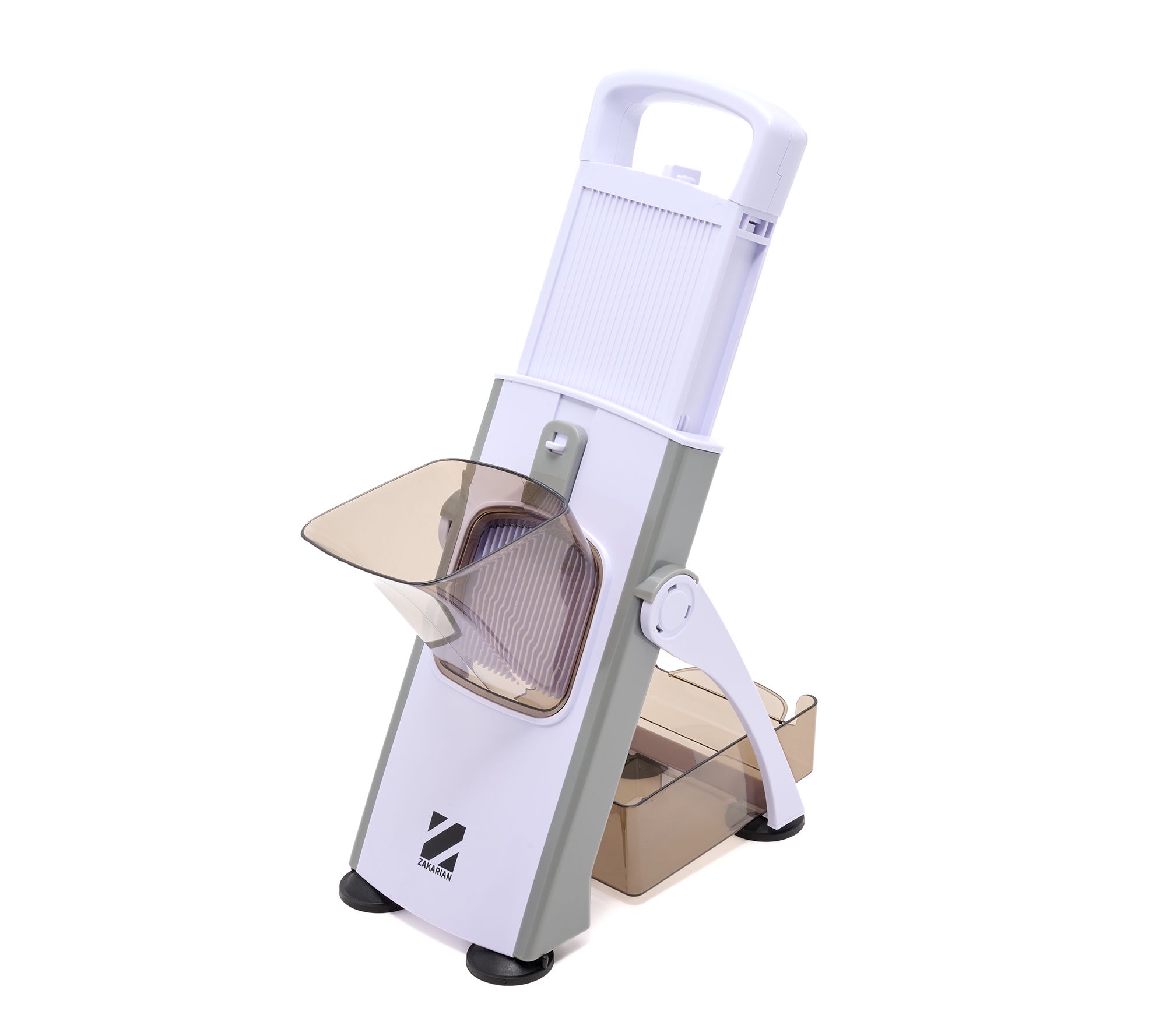 Prep work is a breeze with this upright adjustable mandoline. Slice, julienne, or mince with ease, while the included catch bin keeps kitchen counters tidy and your ingredients ready for your recipe. From Geoffrey Zakarian.
