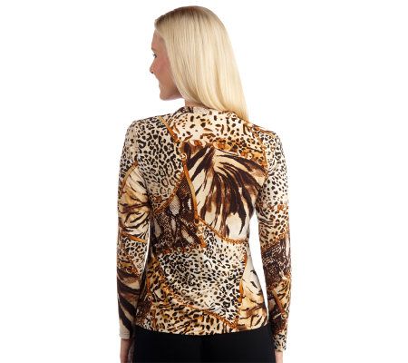 George Simonton Animal Chain Print Milky Knit Top with Shirring