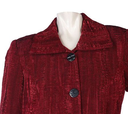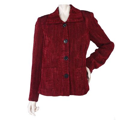 Button-front closure, long sleeves, two front hip pockets, straight bottom hem