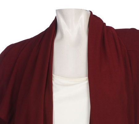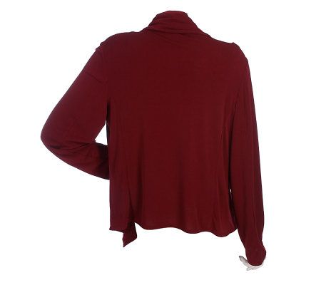 Draped with drama, this cascade front cardigan is perfect for chilly days in the air conditioning. Layer it on top of your outfit; the solid color ensures its versatility. From Simonton Says by George Simonton.