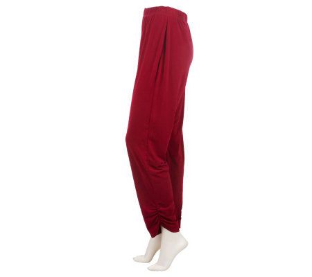 A stylish foundation. Perfect for pairing with a wide variety of tops, these Milky Knit pants make a versatile addition to your wardrobe. Ruching along the side seam of the bottom openings gives them a fashionable touch. From Simonton Says by George Simonton.