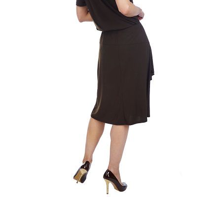 Showcase your fun, flirty side with this milky knit skirt. The seam detail and cascading trim along the side of the skirt add a touch of fashionable flair. From George Simonton.