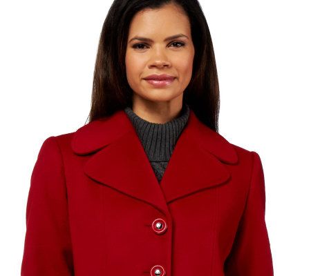 A slender silhouette. This petite maxi coat gives full coverage, but in a fitted fashion. The snappy buttons, notched collar, and slash pockets achieve a tailored look that goes to great lengths. From Simonton Says by George Simonton.