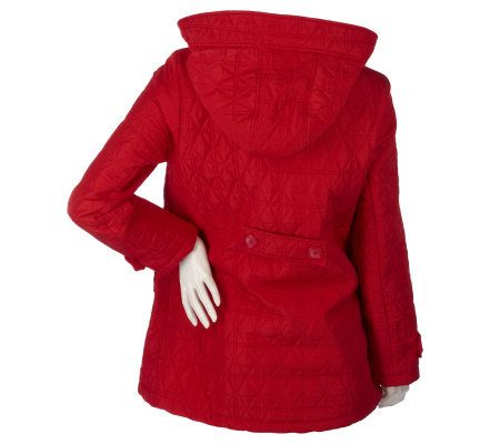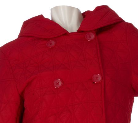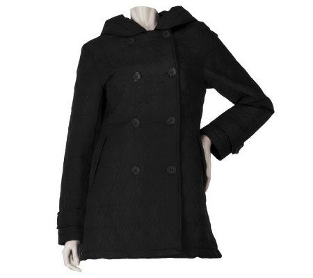 Frosty weather is no match for this fully lined hooded jacket. The quilted, double-breasted design is the picture of cold-weather chic. From Simonton Says by George Simonton.