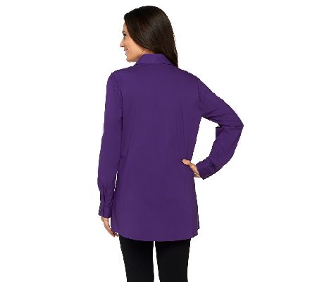 Getting down to business. Start off the day in this versatile long-sleeved button-front. The pointed collar, buttoned cuffs, and two front pockets exude confidence and control. When it's time to get serious, roll up your sleeves using the convenient roll tabs, and dive in. From George Simonton.