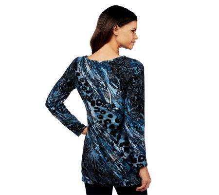 Put it in print! Declare your passion for fashion in this printed sweater knit tunic. Detailed with a sophisticated bateau neckline, it adds the perfect amount of punch to your outfit. From Simonton Says by George Simonton.