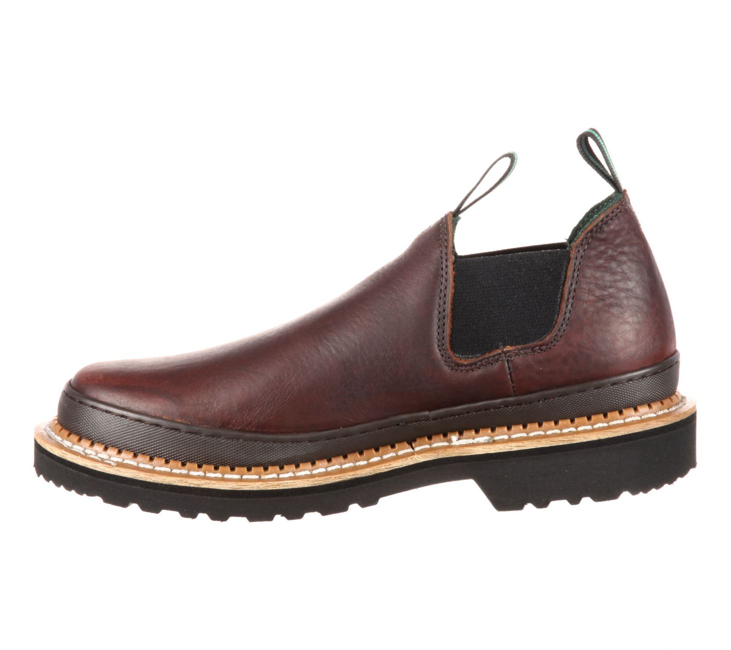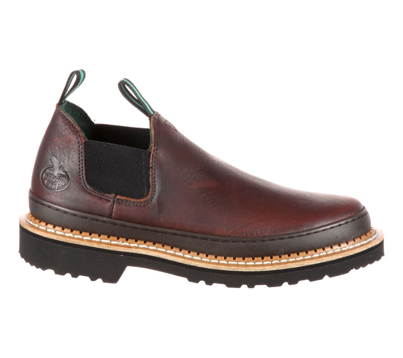 Step into comfort and durability with the Georgia Boot men's leather Giant Romeo boots. Perfect for both work and casual outings, these boots feature a full-grain leather upper. The EVA midsole and mesh-covered cushioned insole provide all-day comfort, while the slip-resistant outsole offers reliable grip. From Georgia Boot.